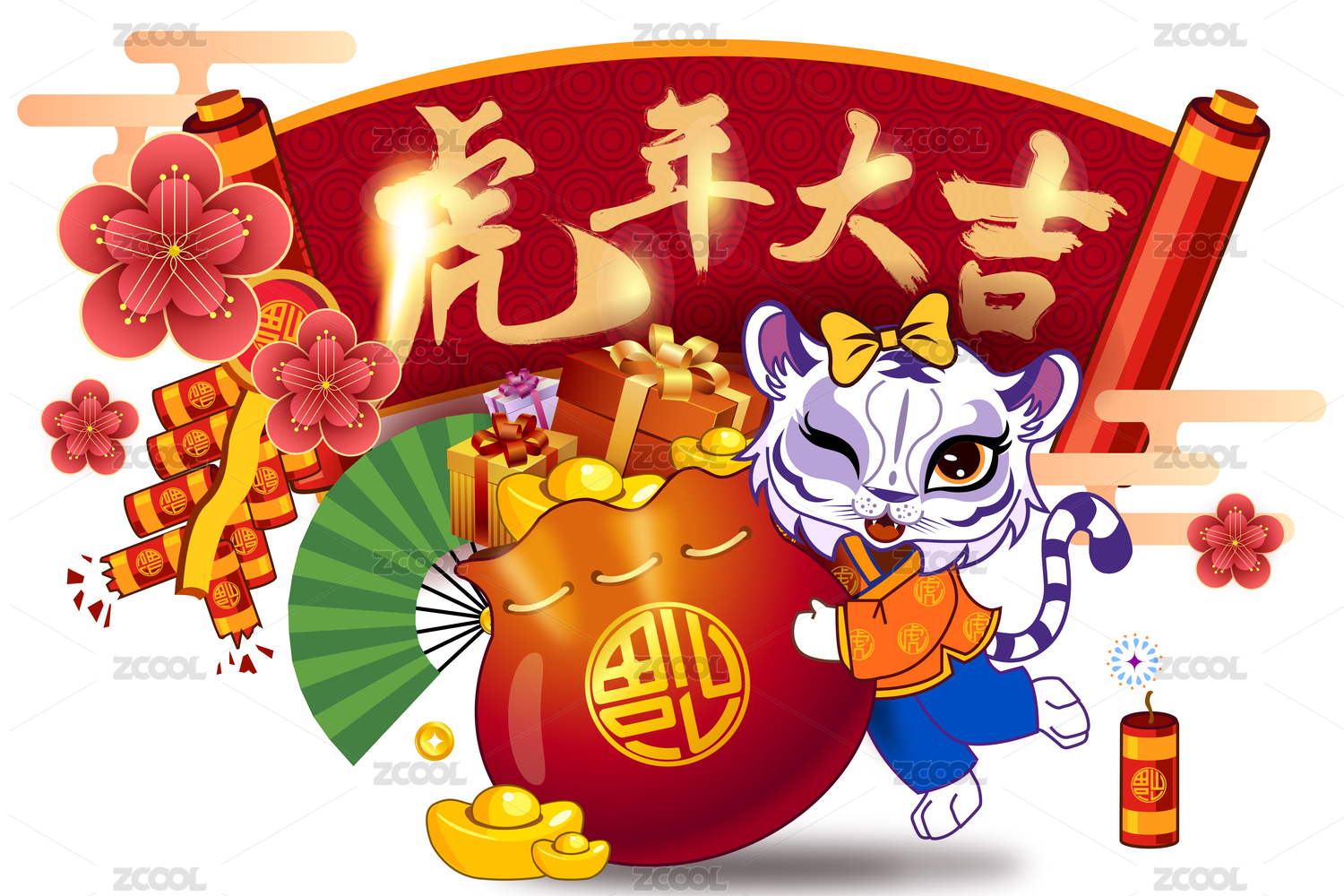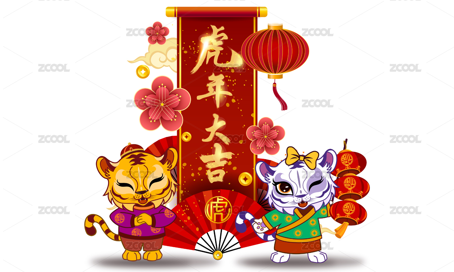 2022,虎,老虎,虎年,卡通,虎娃,春节,新年,过年,喜庆