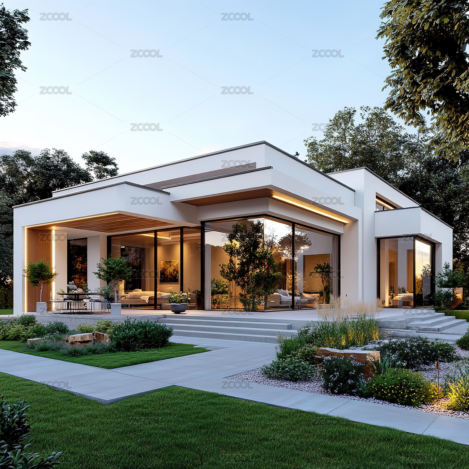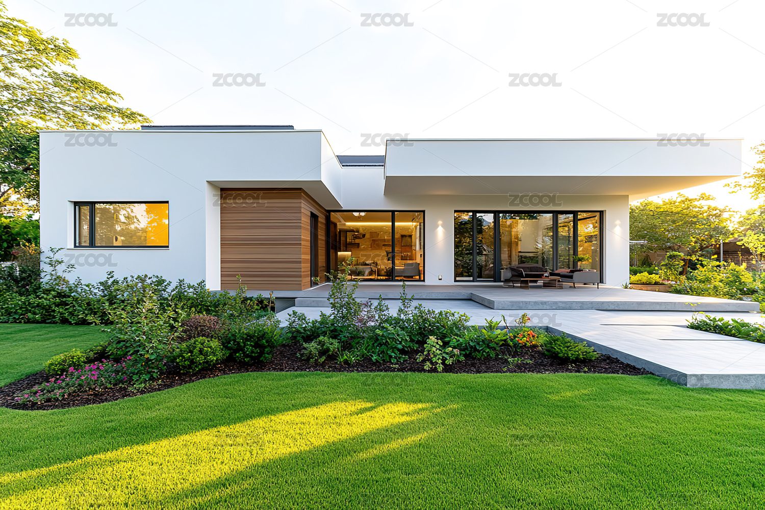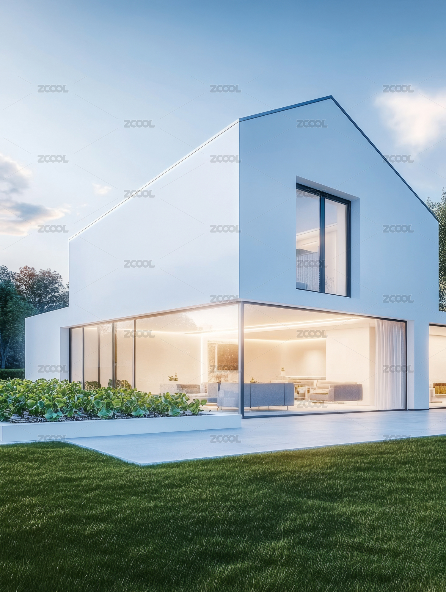 现代简约别墅前的草地空间背景