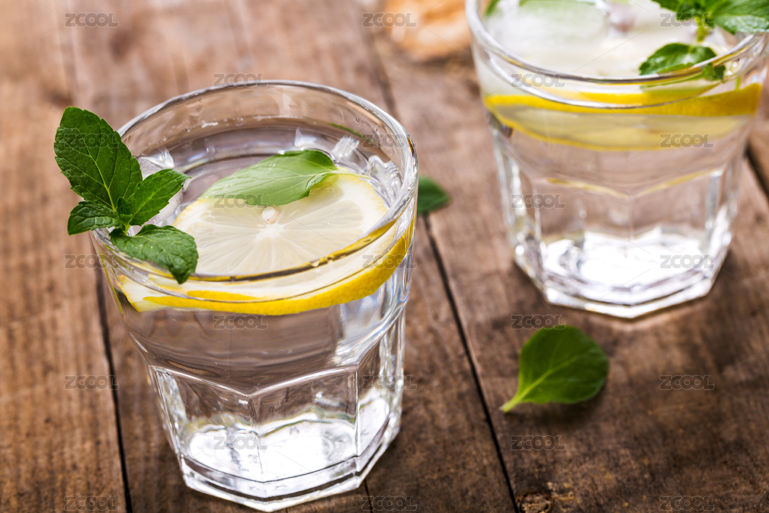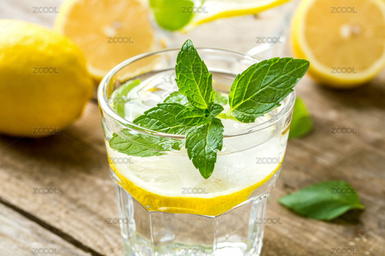 一杯新鲜的柠檬水和新鲜的柠檬、薄荷