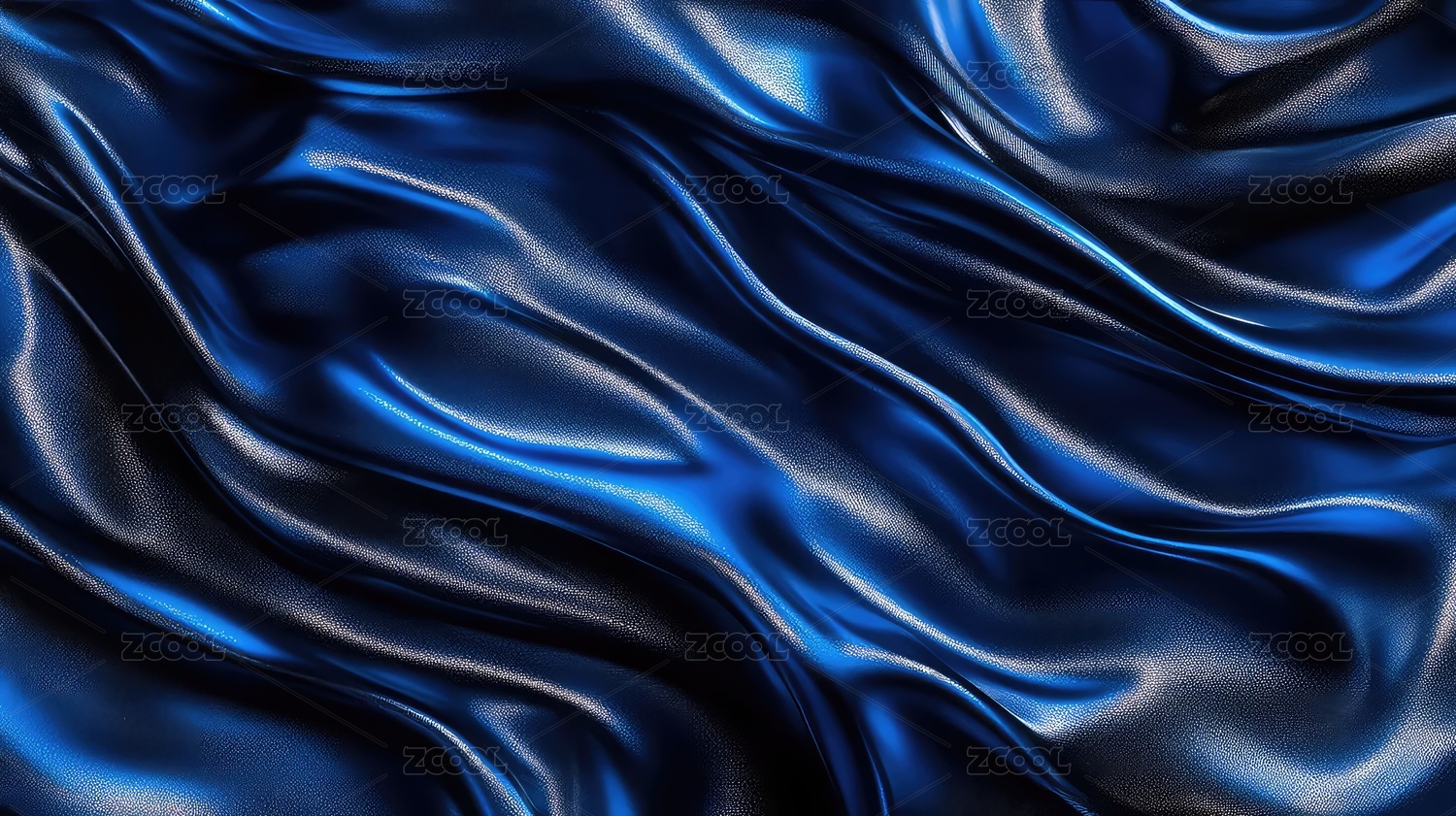 蓝色丝绸质感面料呈现波浪纹理