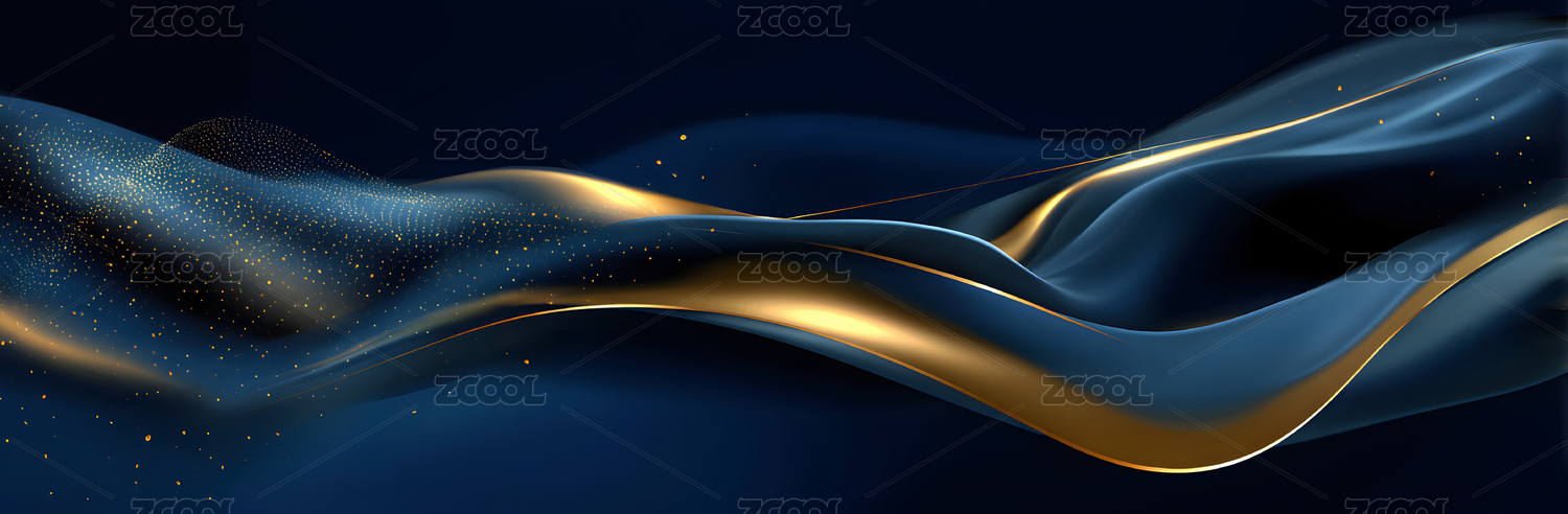 豪华蓝色和金色抽象背景,抽象闪亮的波浪设