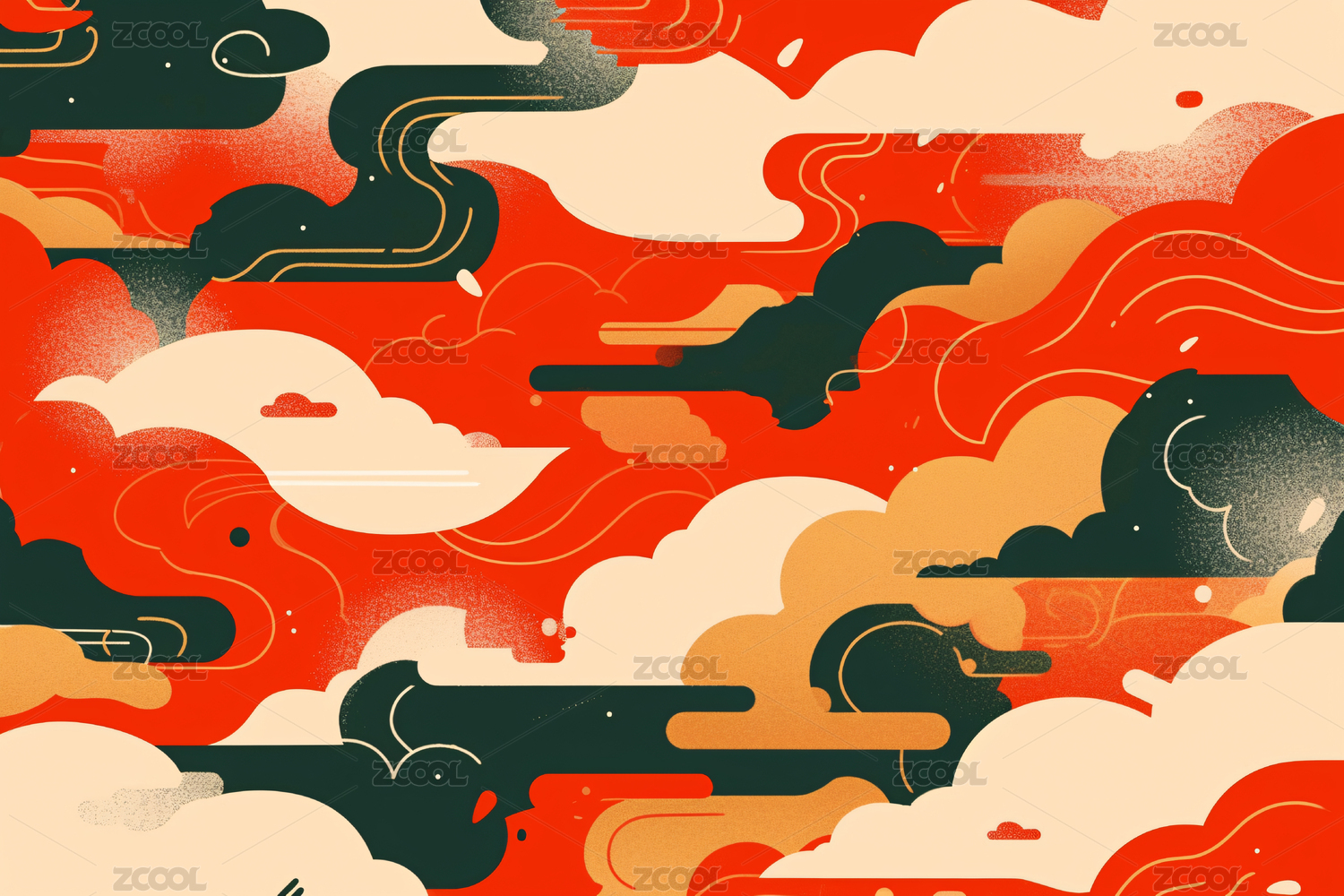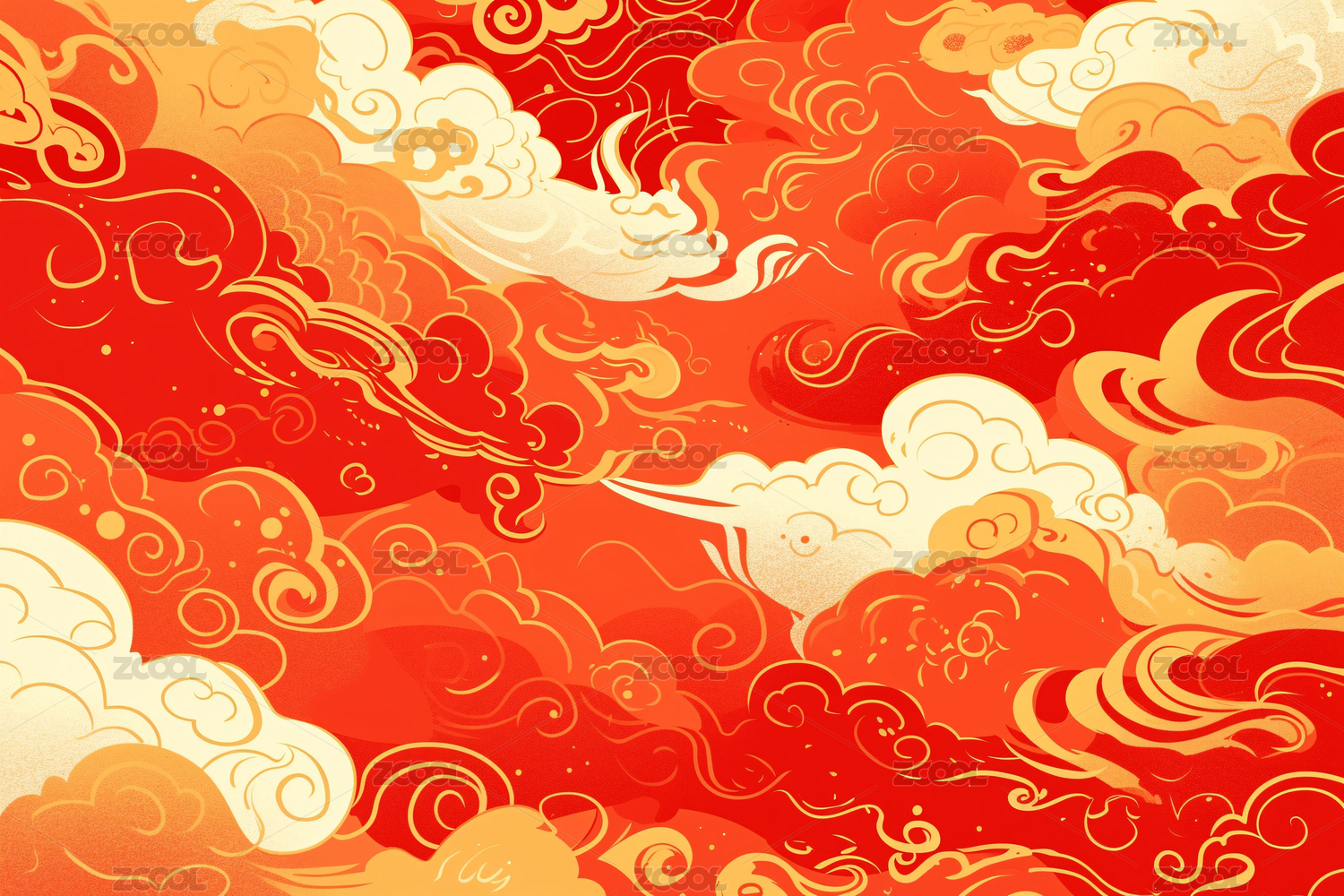 新年春节国潮祥云底纹传统祥云图案红色背景
