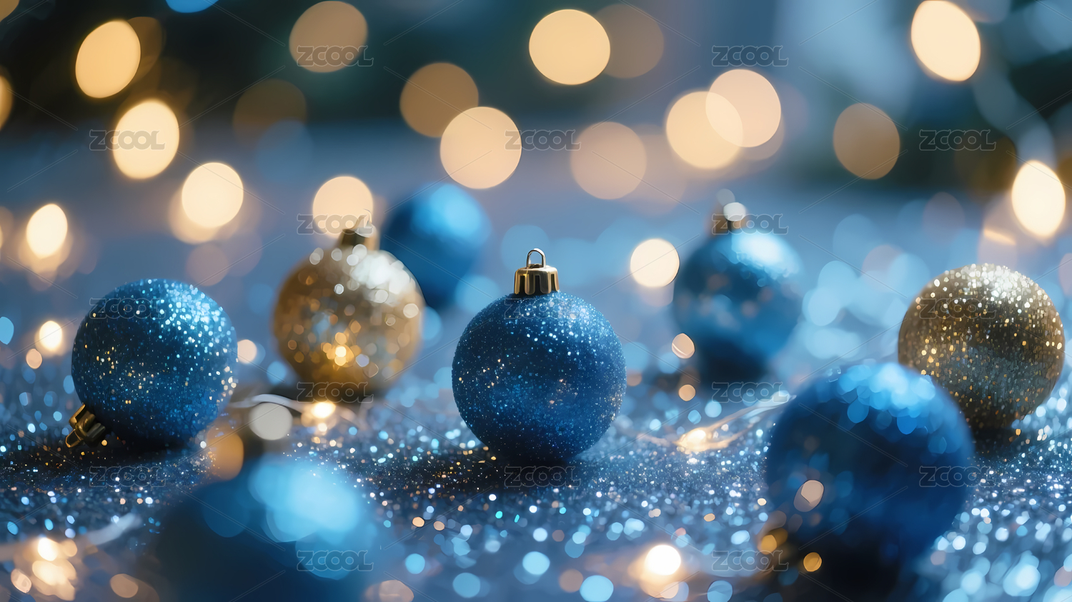 蓝色金色圣诞装饰球