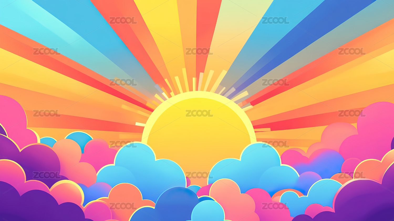 卡通金色阳光主题插画