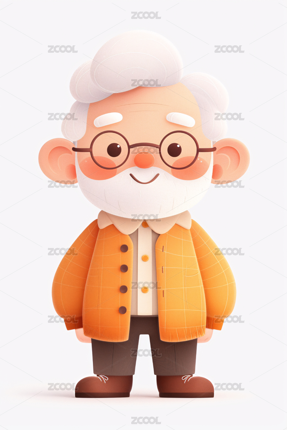 老人,卡通,可爱,微笑,胖,温暖,友好,插画,设计,角色