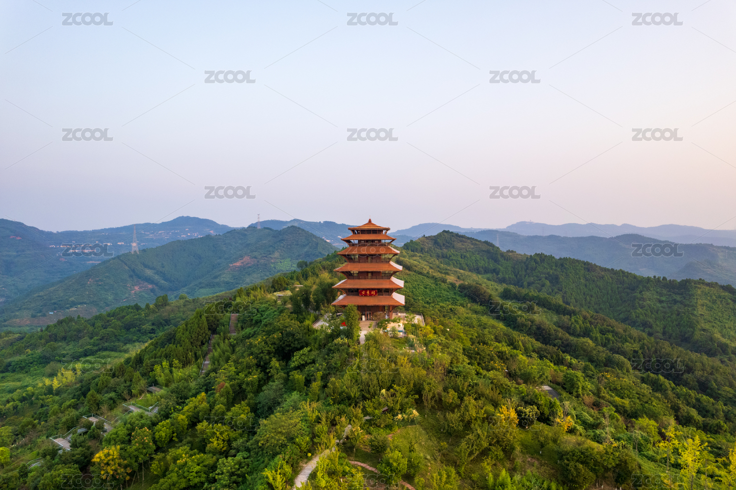 成都龙泉山城市森林公园丹景山丹景阁日出