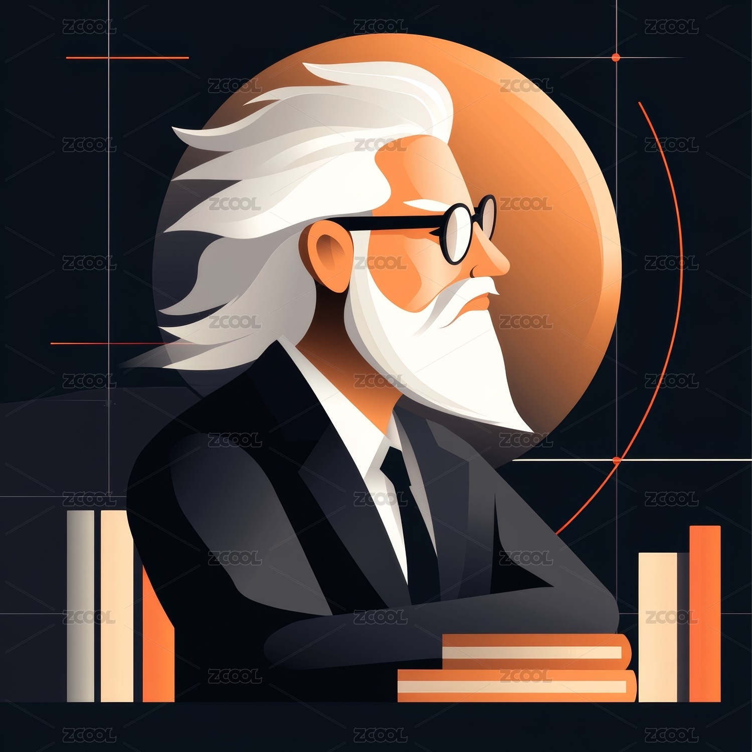 黑色男士时尚肖像大头照矢量扁平化设计背景