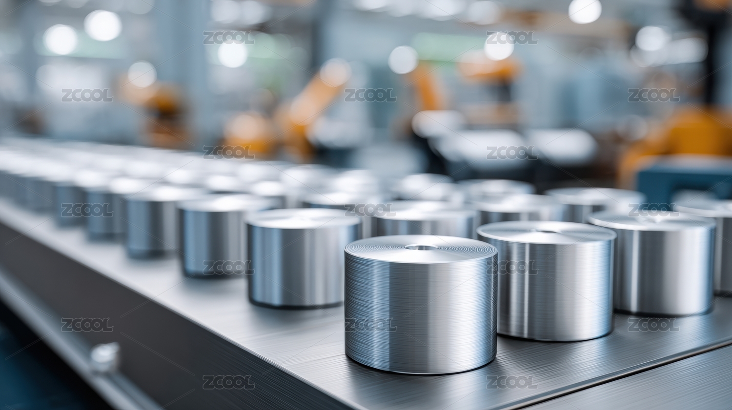 现代化工厂中的金属圆柱体生产线