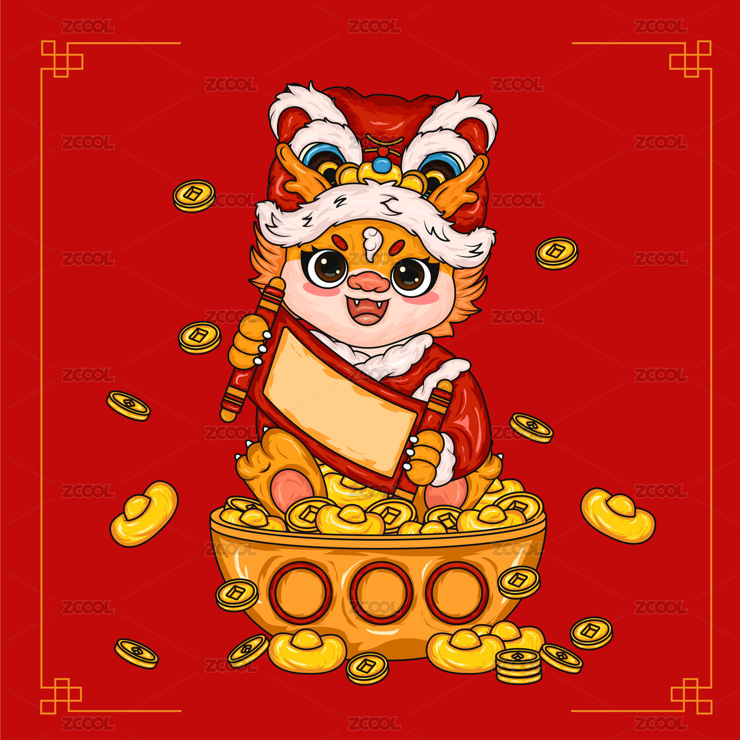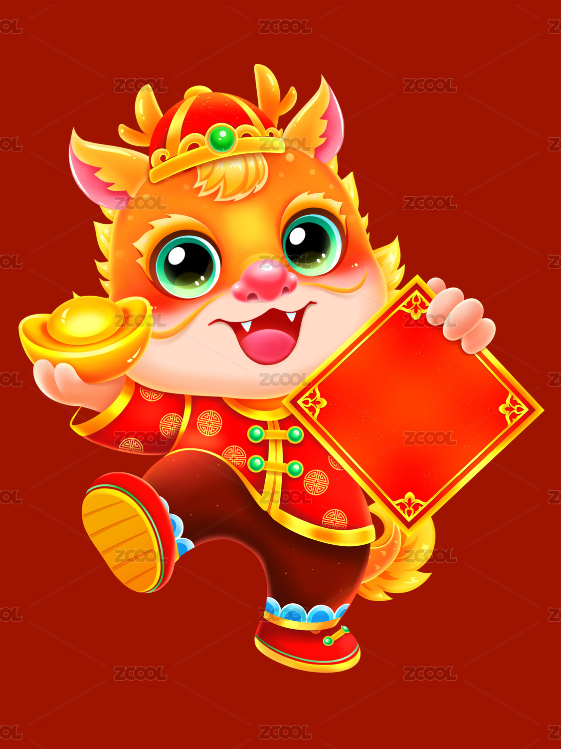 矢量龙年十二生肖新年春节龙头拜年封面背景