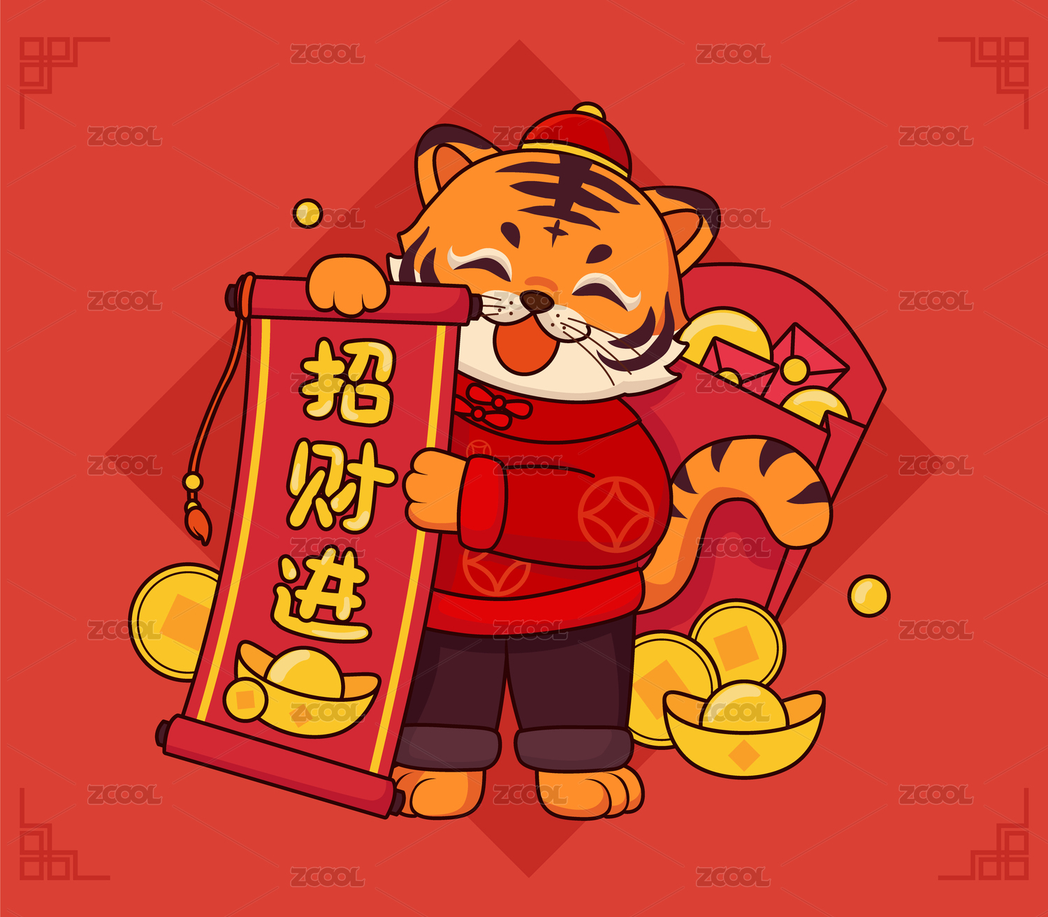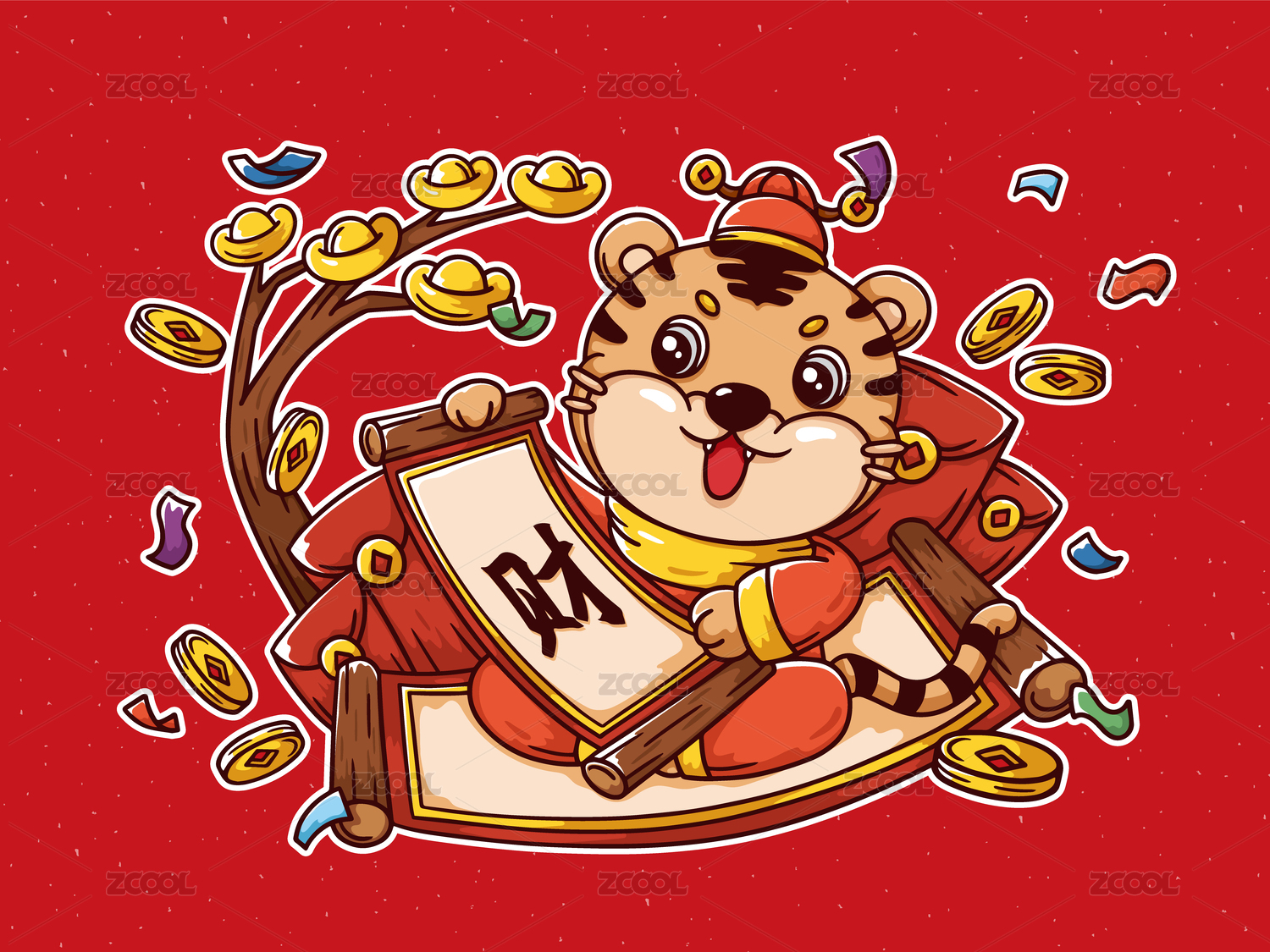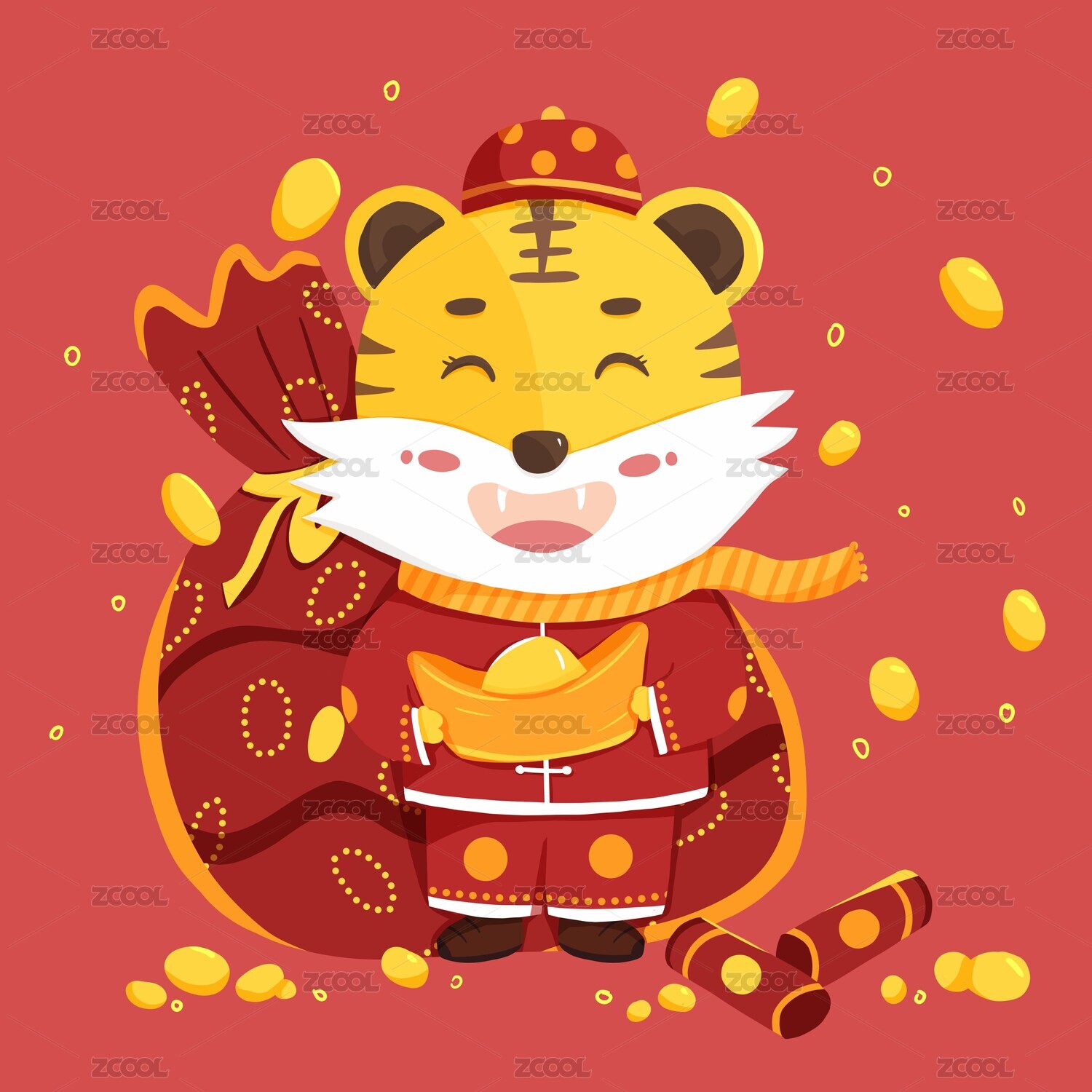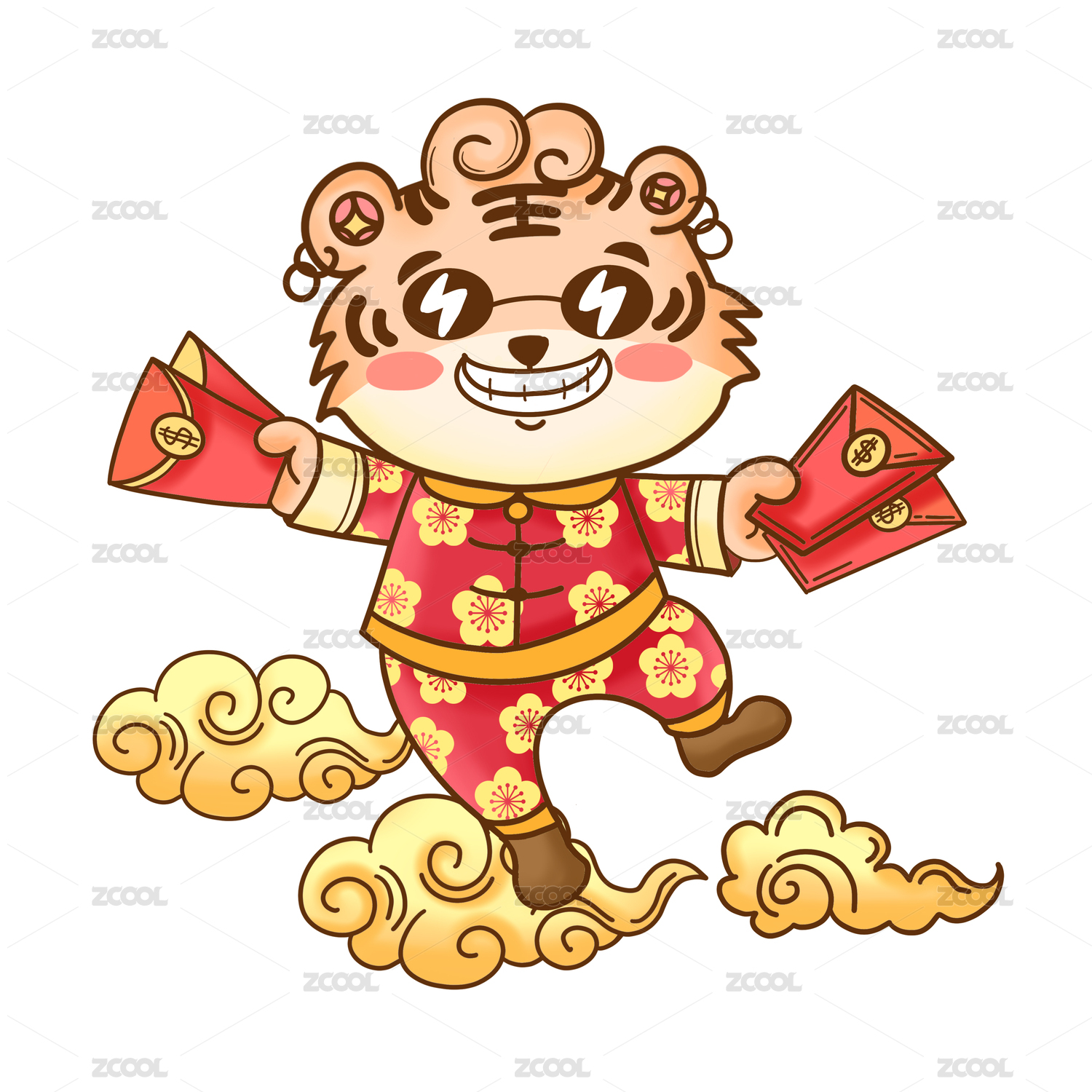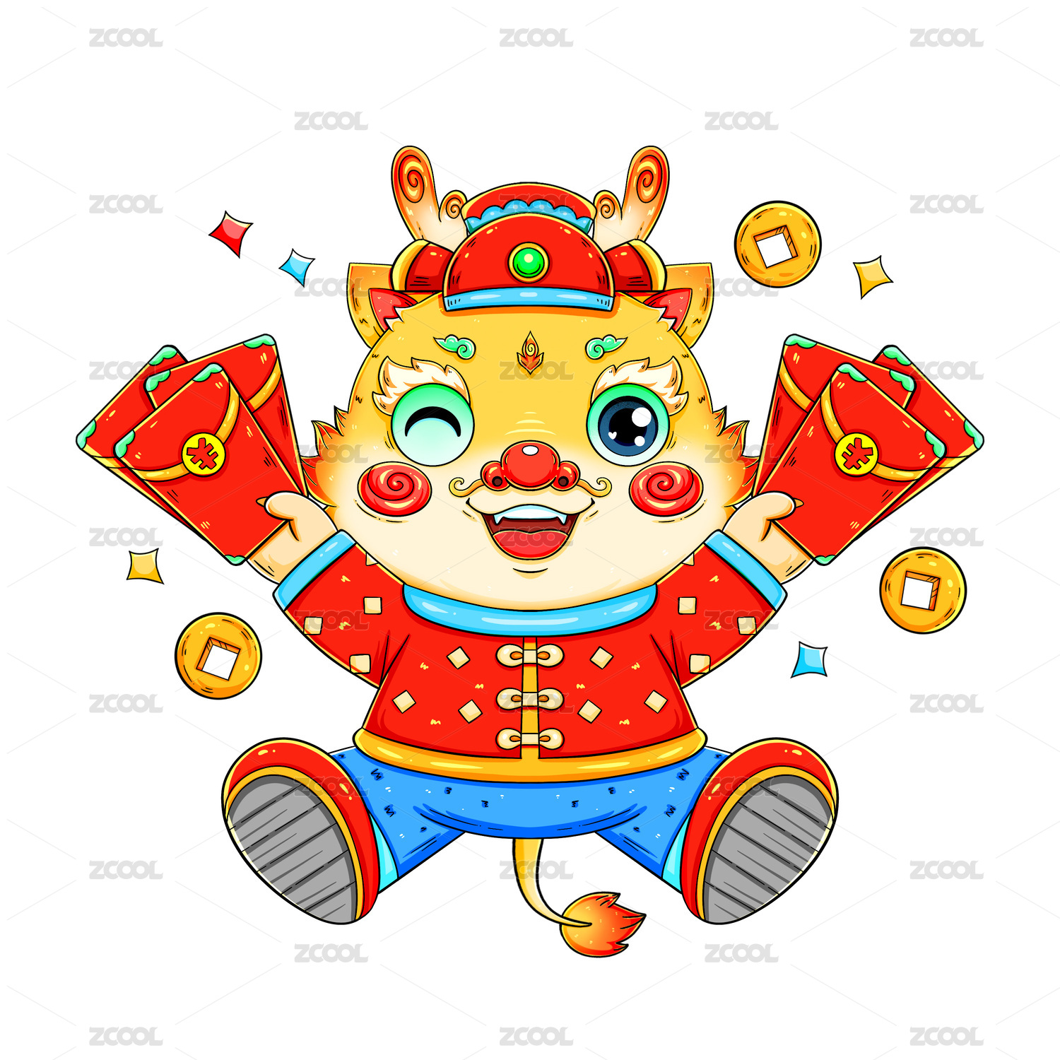 龙年喷钱枪矢量国潮促销喷洒钱币卡通龙插画