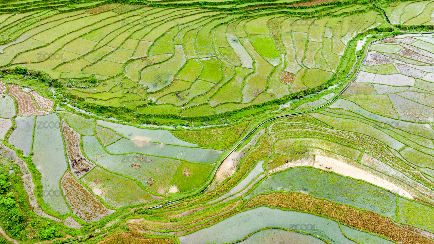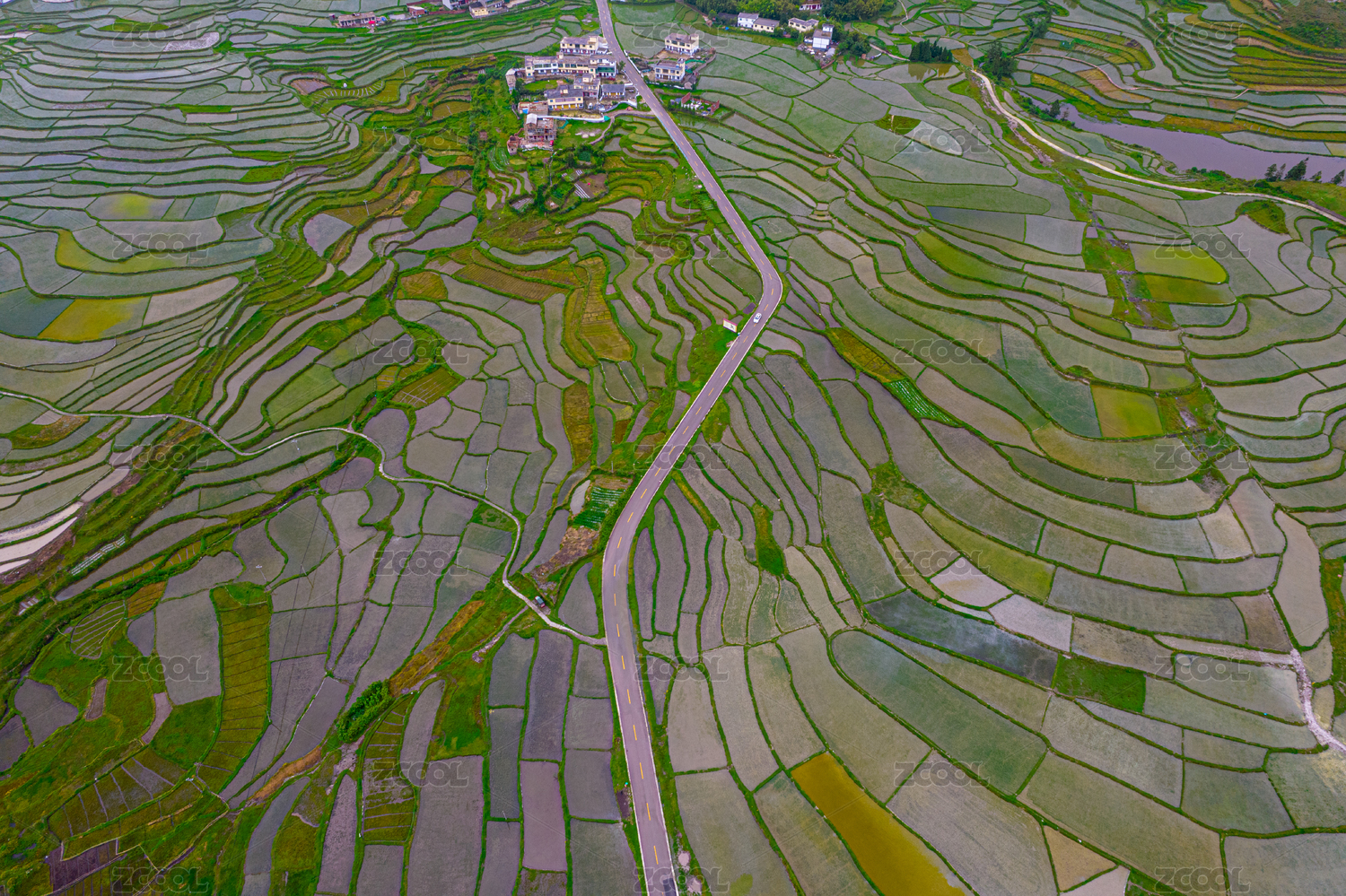 春季的中国贵阳市花溪高坡乡梯田航拍
