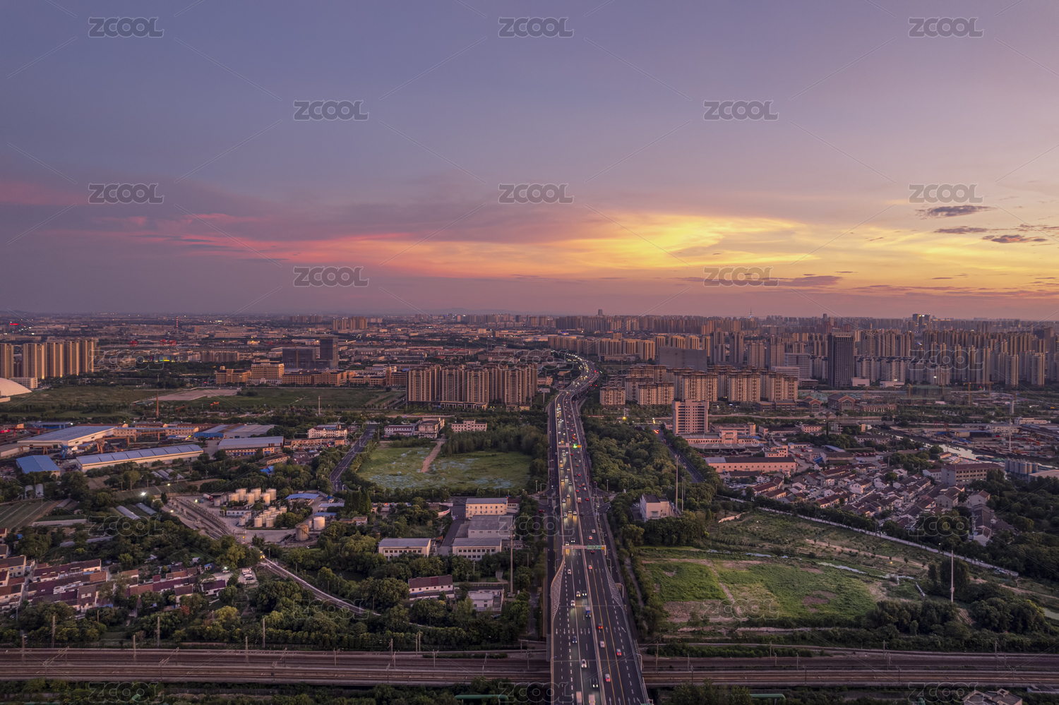 晚霞下的高架道路