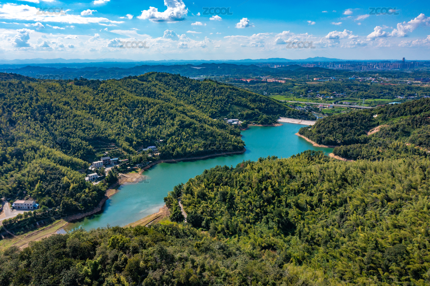 中国浙江省杭州市西湖区双浦镇铜鉴湖航拍