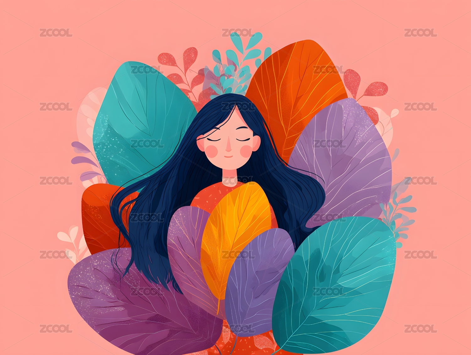 立秋节气女孩森林旅行秋分自然卡通唯美插画