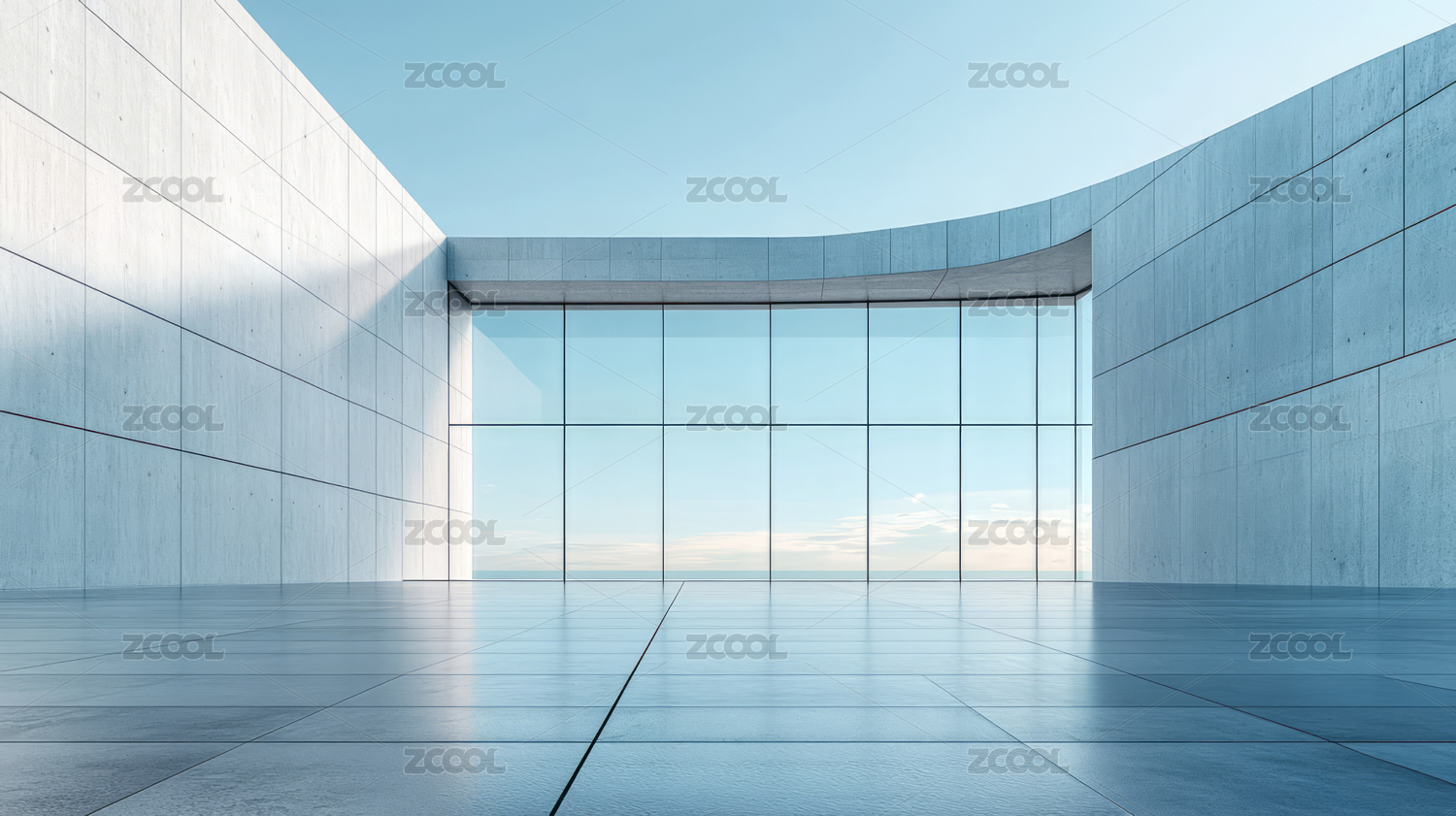3D渲染宽敞大型落地玻璃墙企业办公室外观