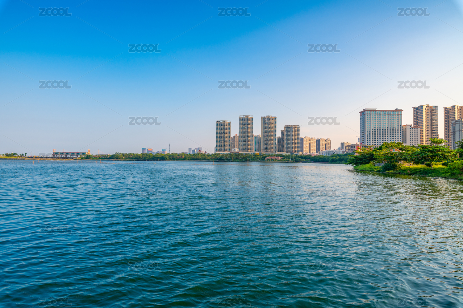 中国广州市南沙区蕉门河岸商业中心建筑天际线