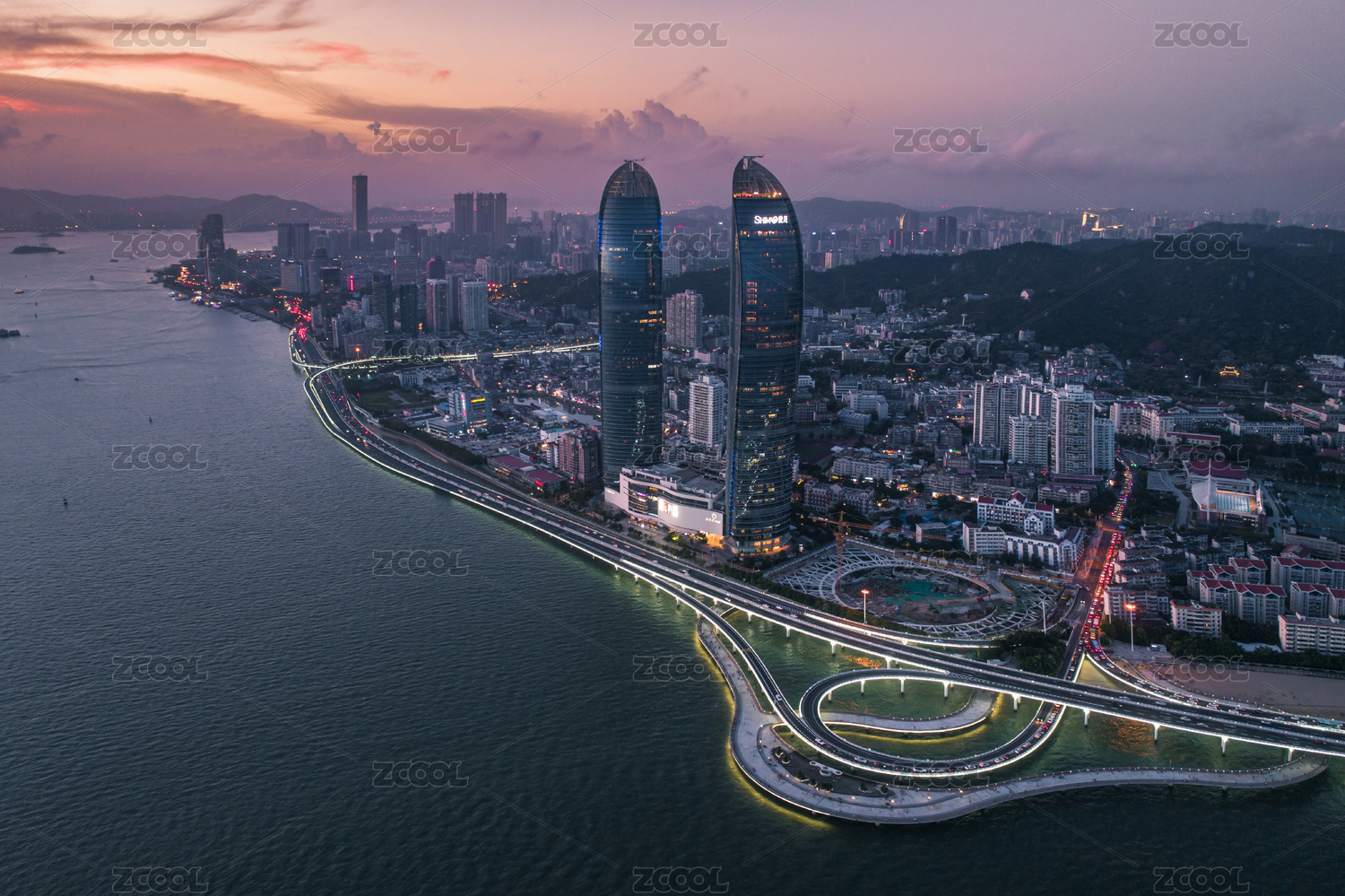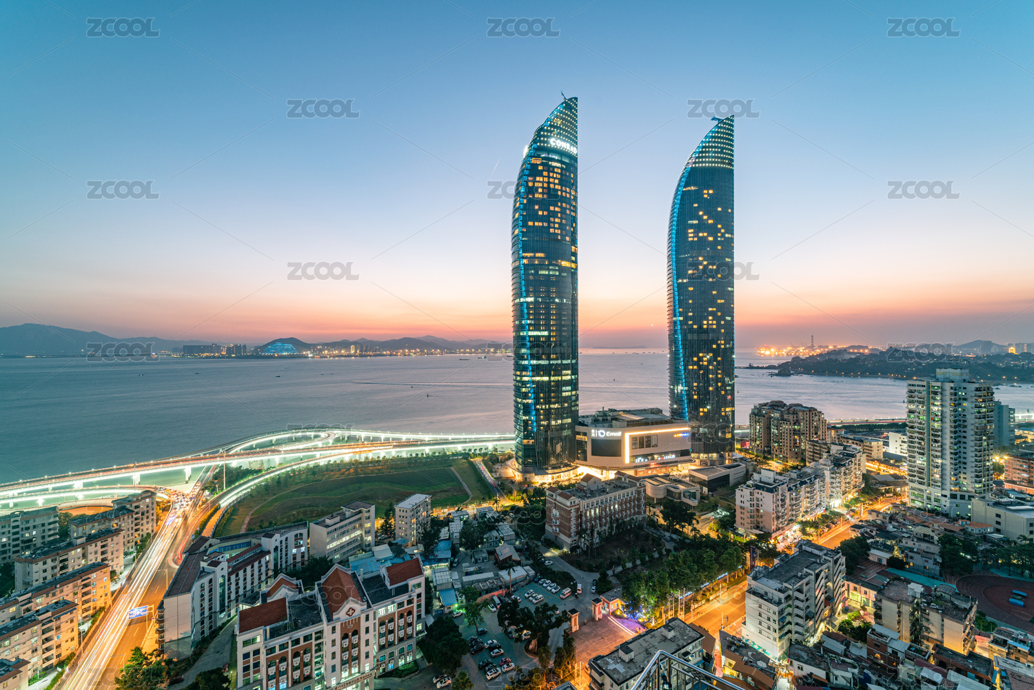 傍晚,厦门,双子塔,城市,黄昏,福建,海岸,海滨,刀,夜景