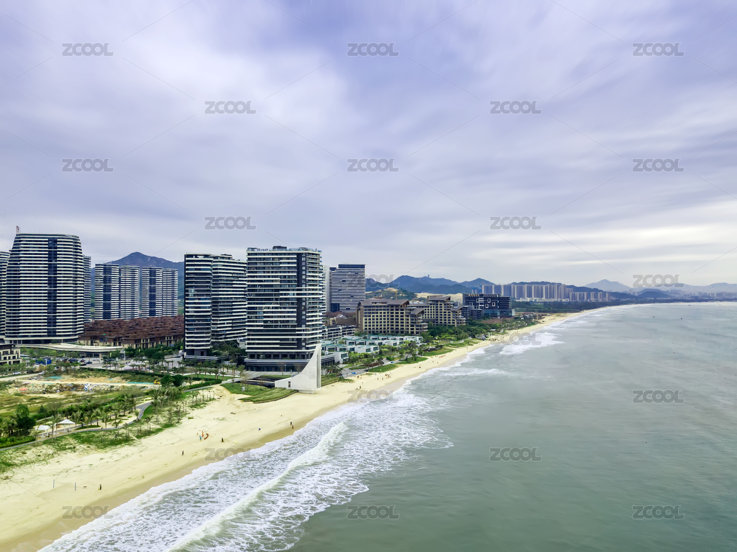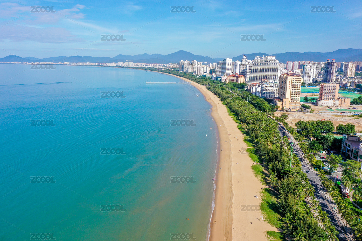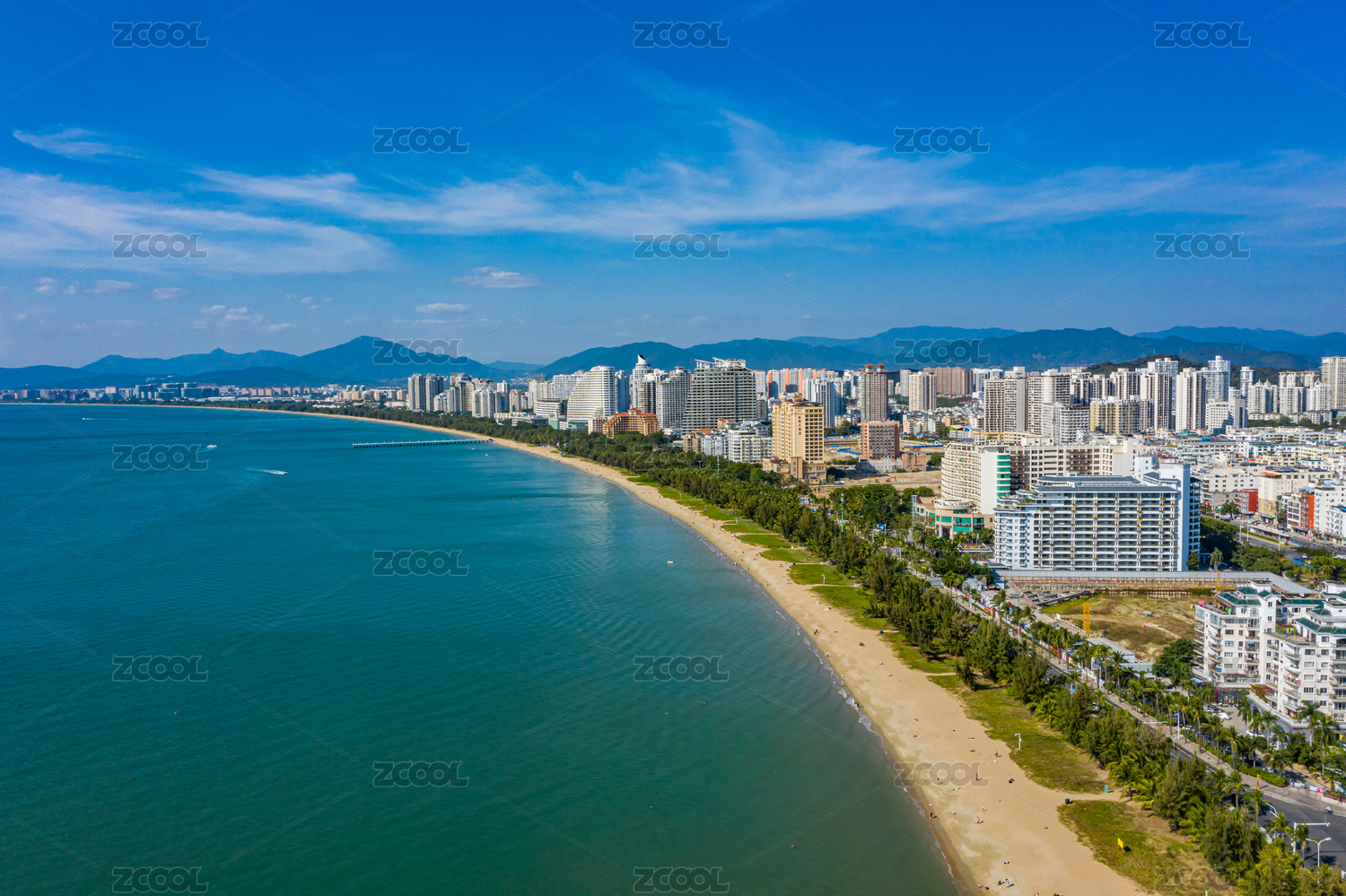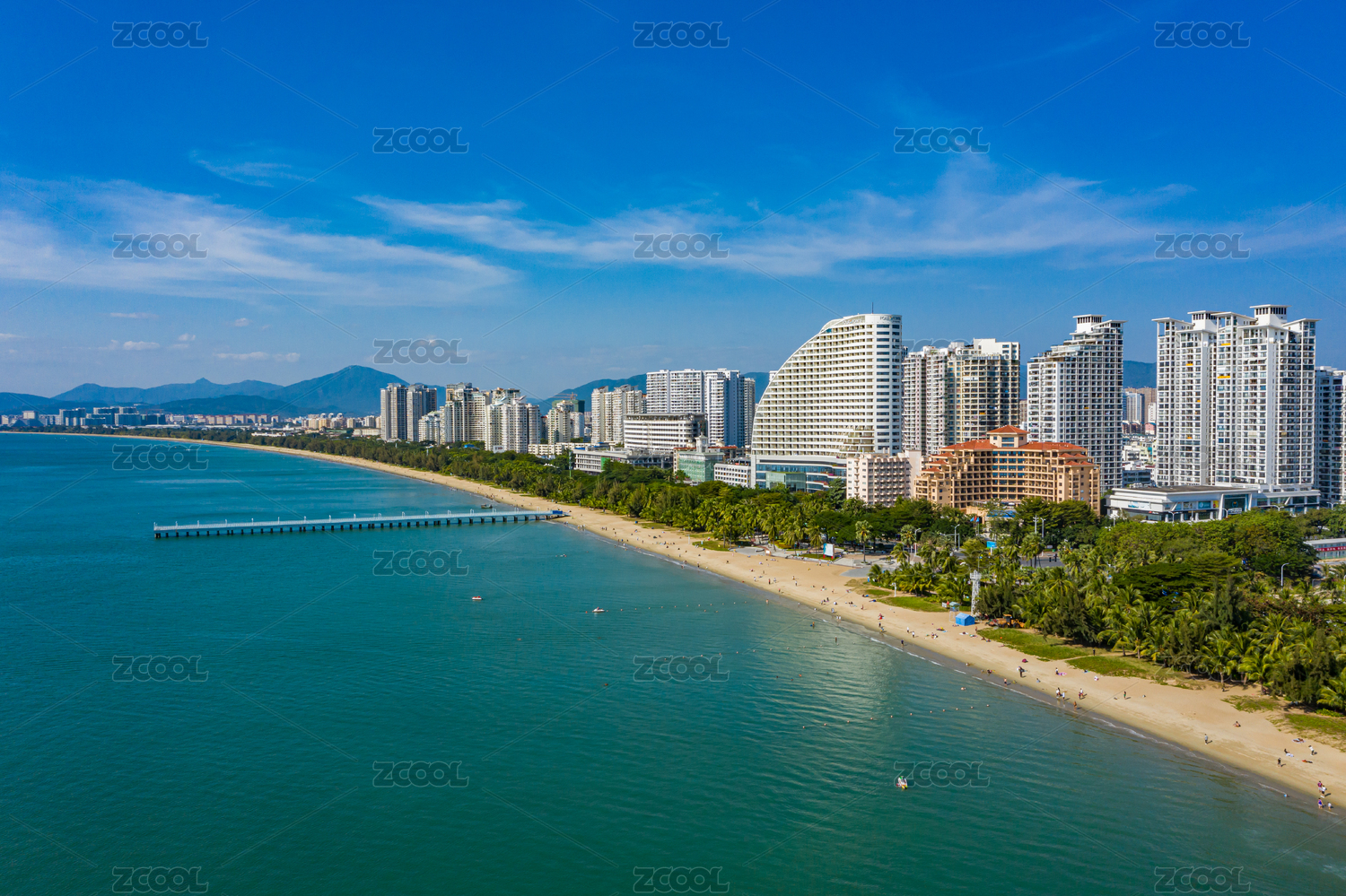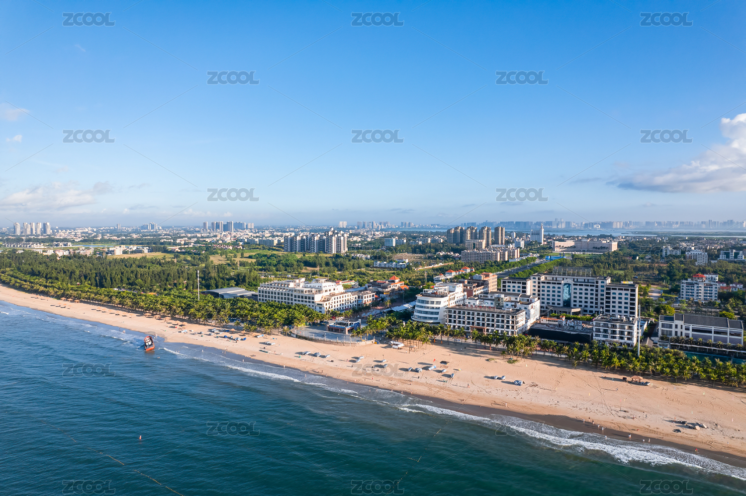 航拍中国海南三亚湾旅游度假区海水浴场椰林沙滩