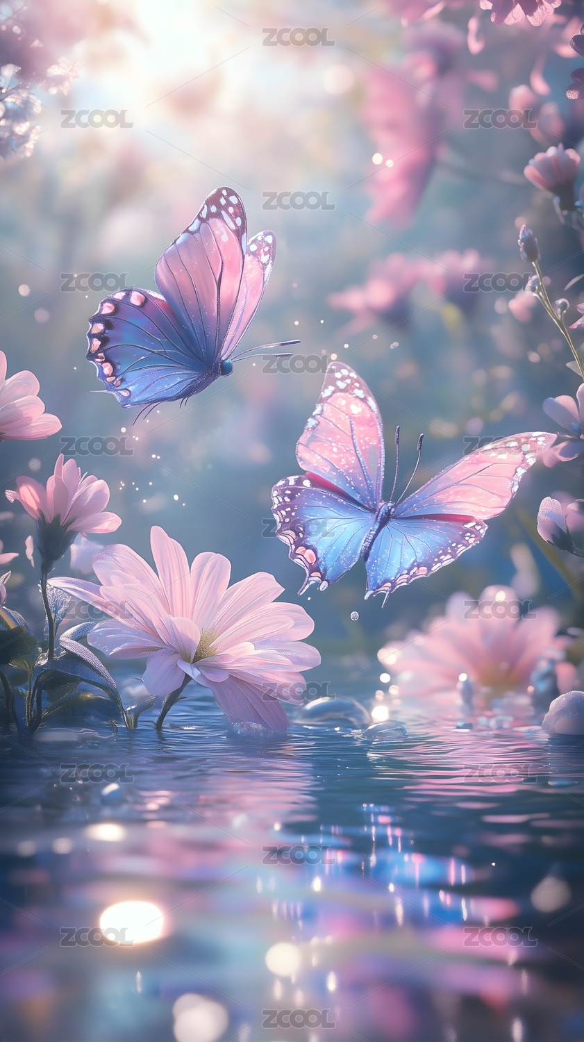 蓝蝴蝶,场景,抽象,手机端,海报背景