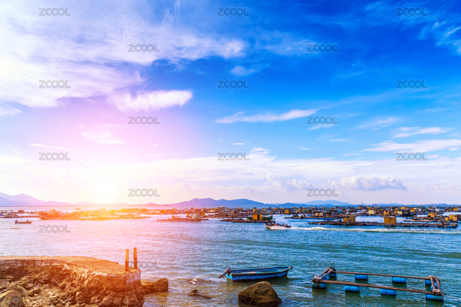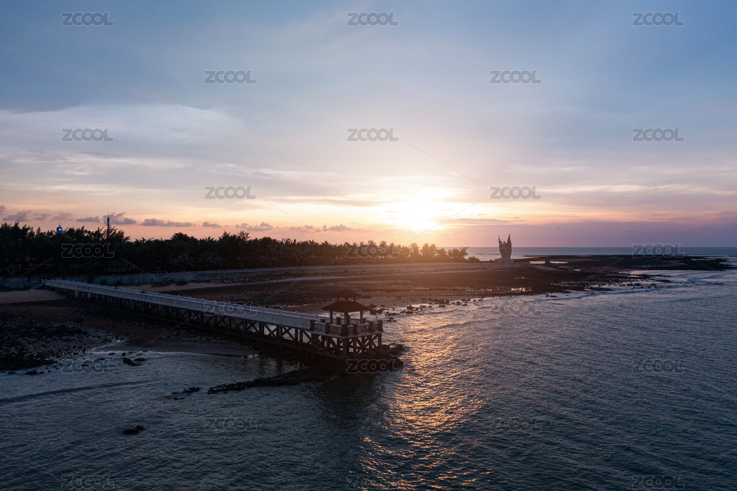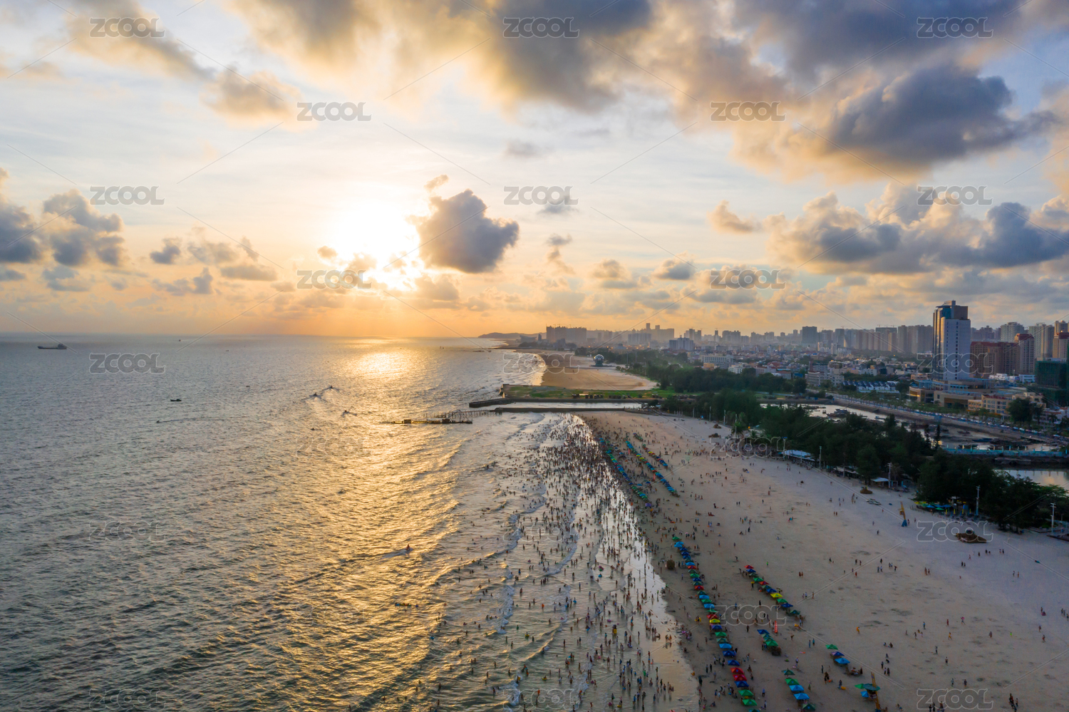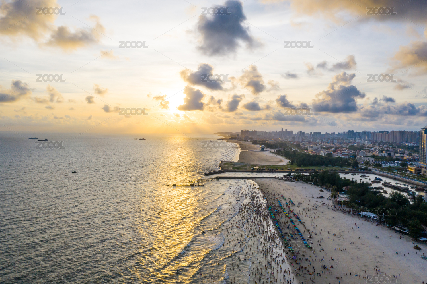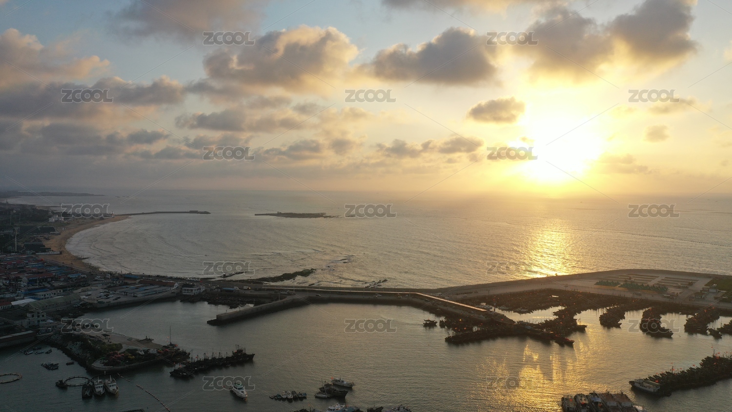 惠州市惠东县港口镇大星山双月湾夕阳航拍