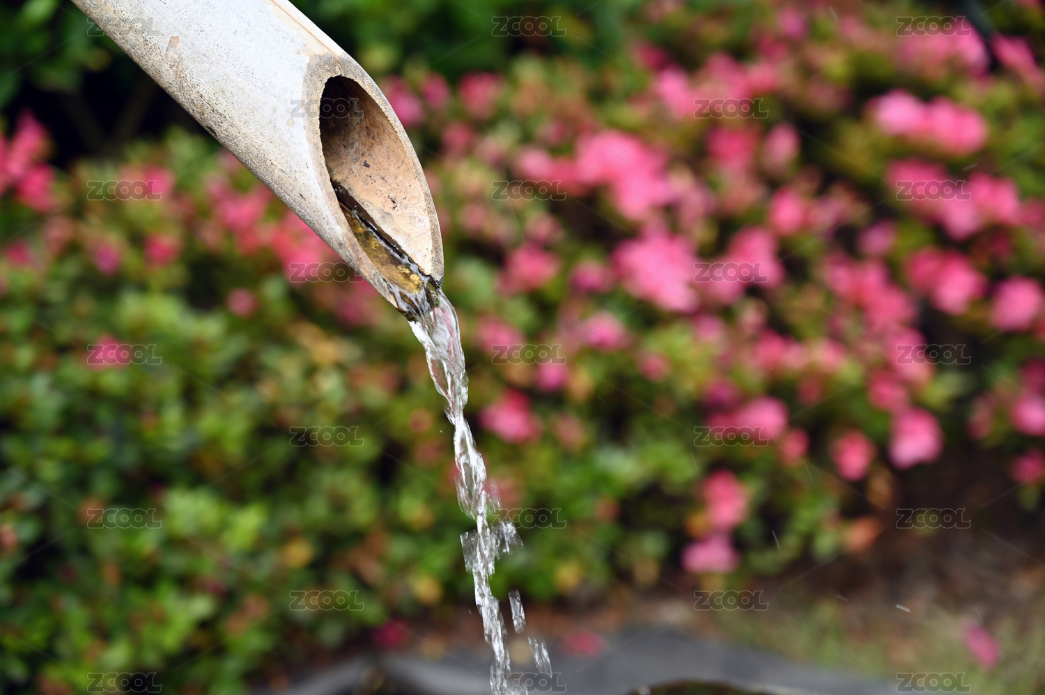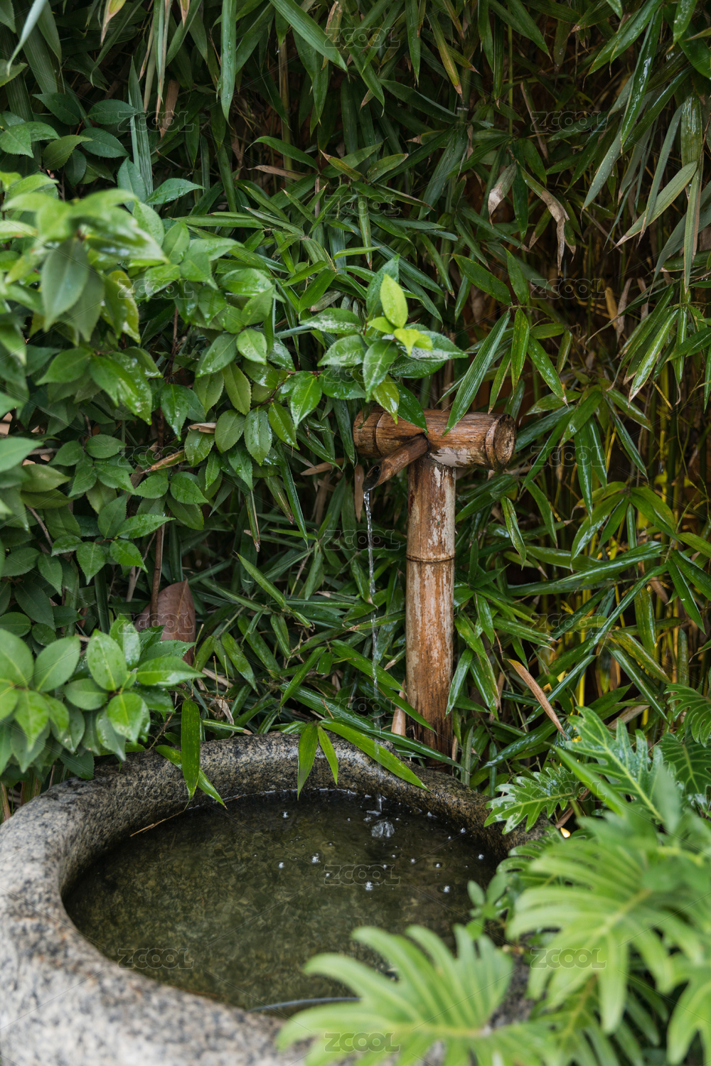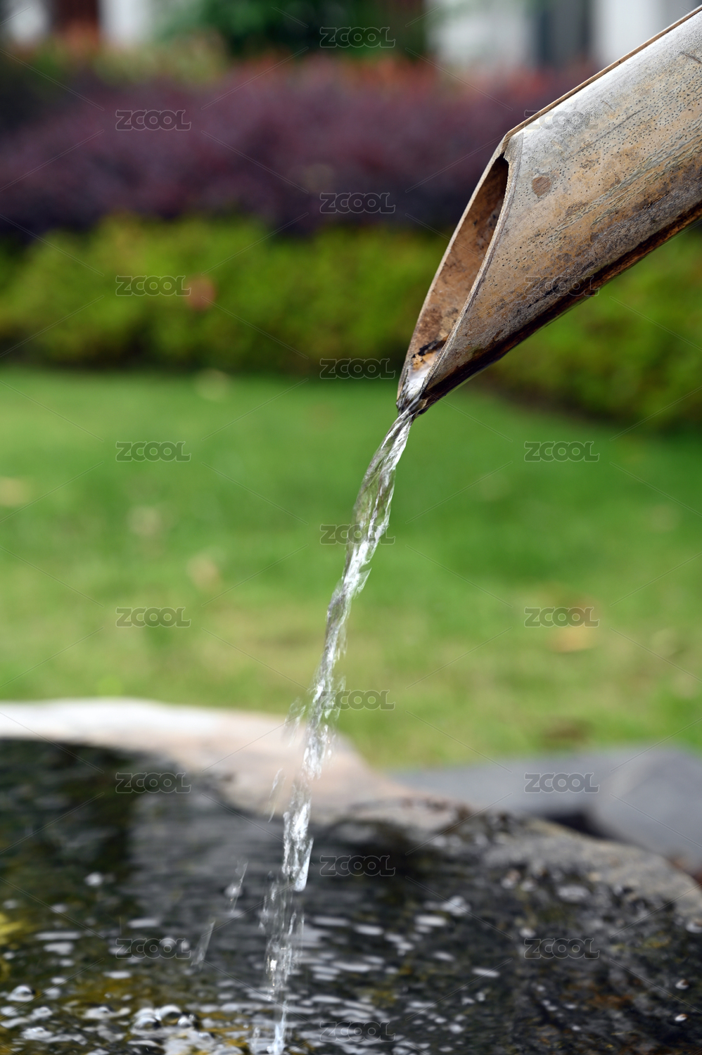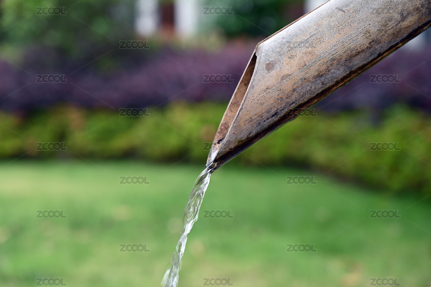 中国城市园林特色景观-竹筒清泉流水装置特写