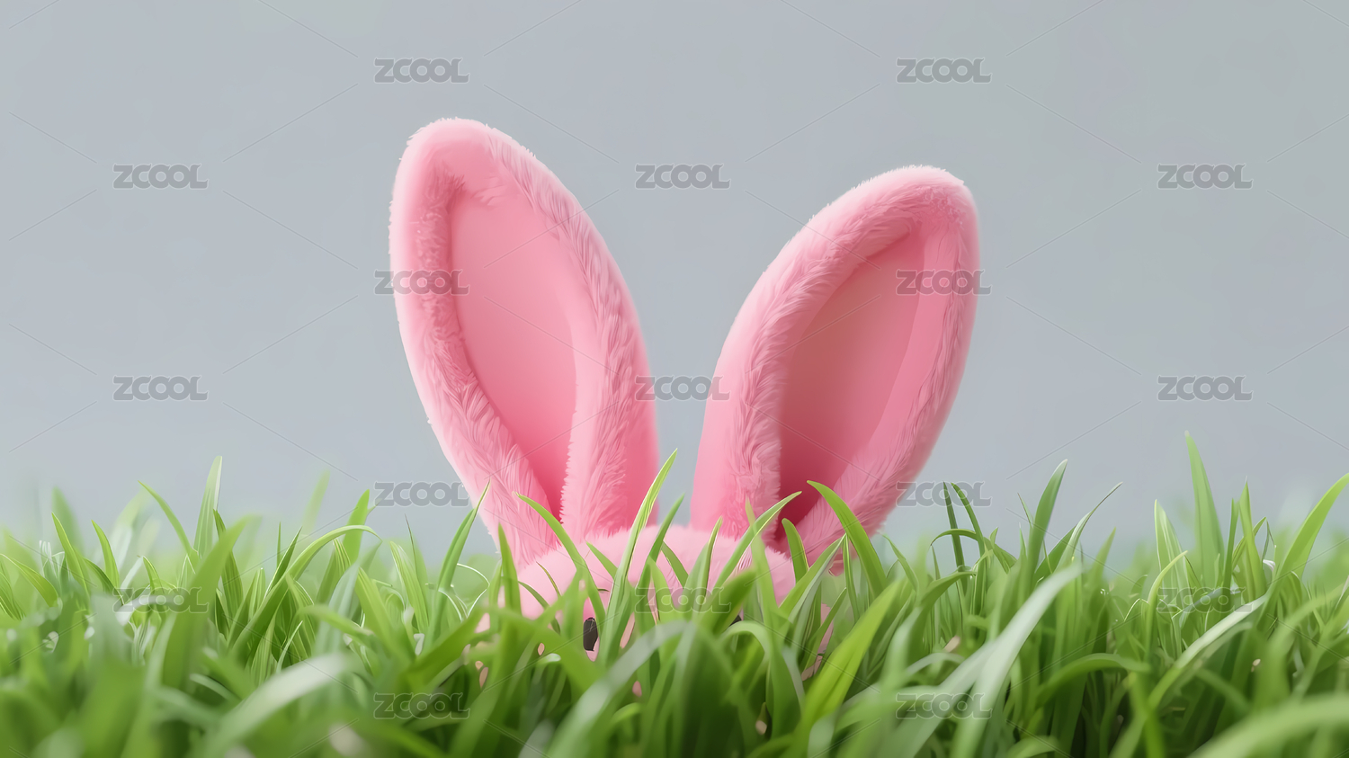 粉色兔耳朵绿色草地