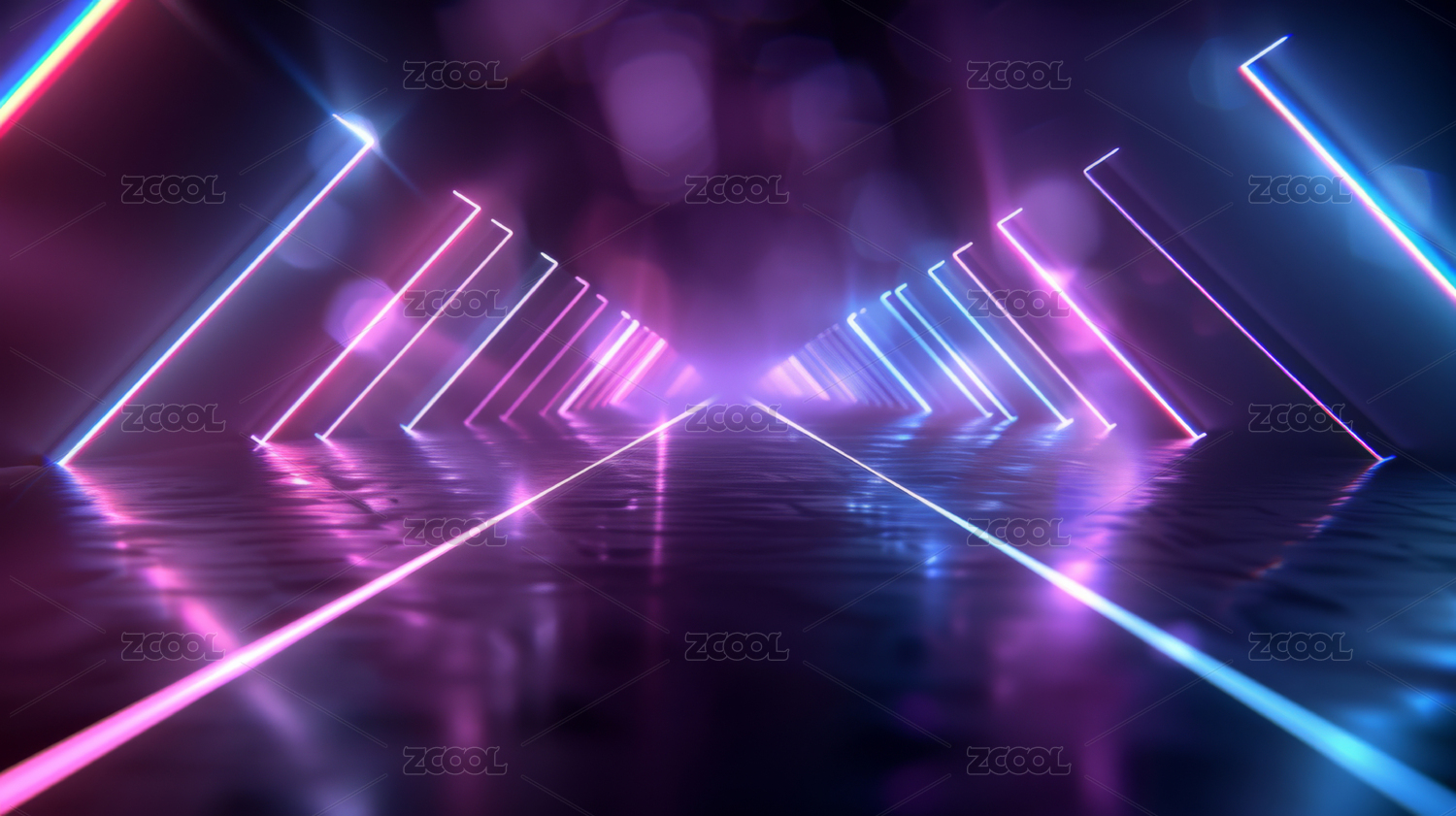 不同几何形状的五彩斑斓的舞台霓虹灯万花筒房间背景素材