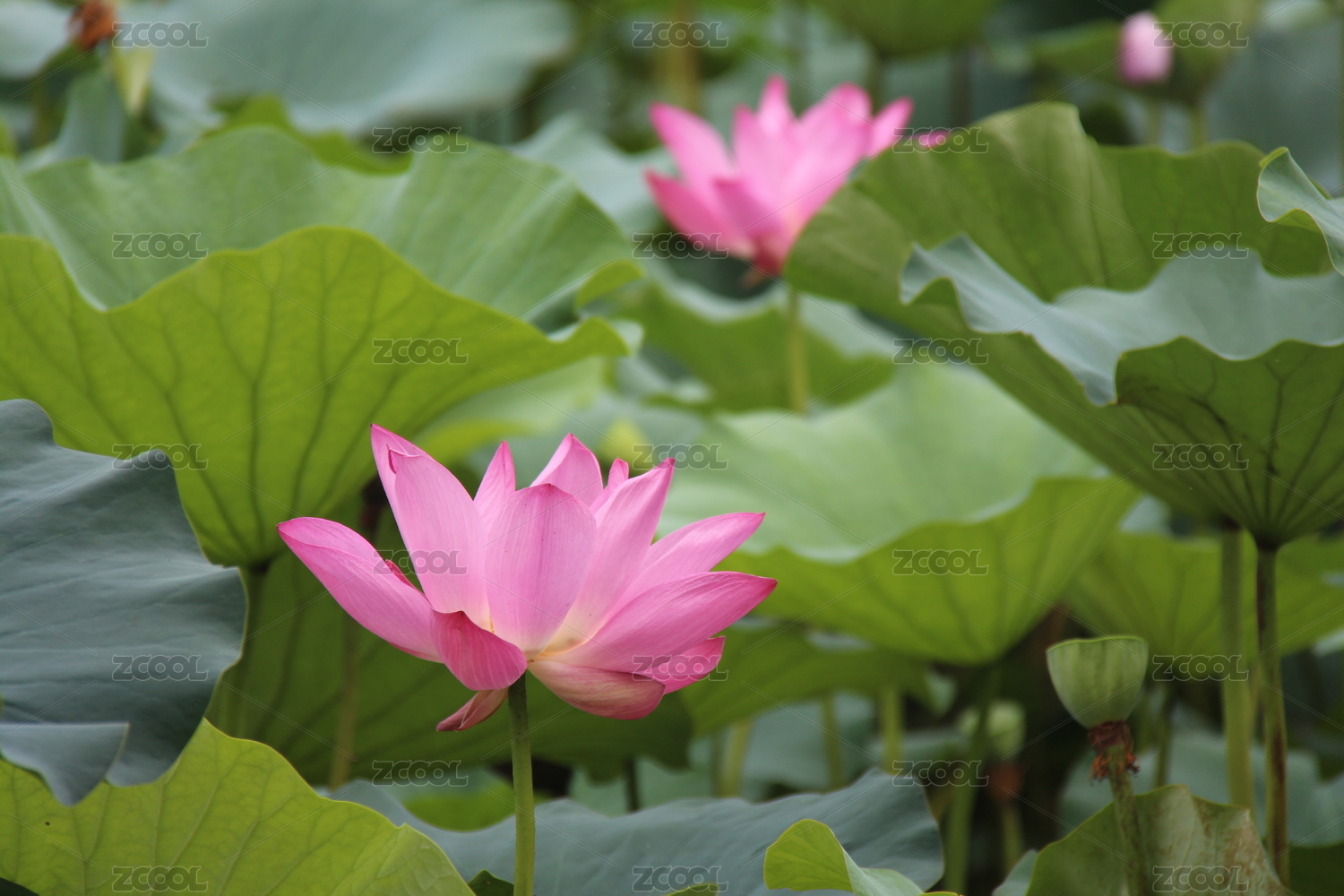 深圳洪湖公园荷塘里绽放的粉红色荷花