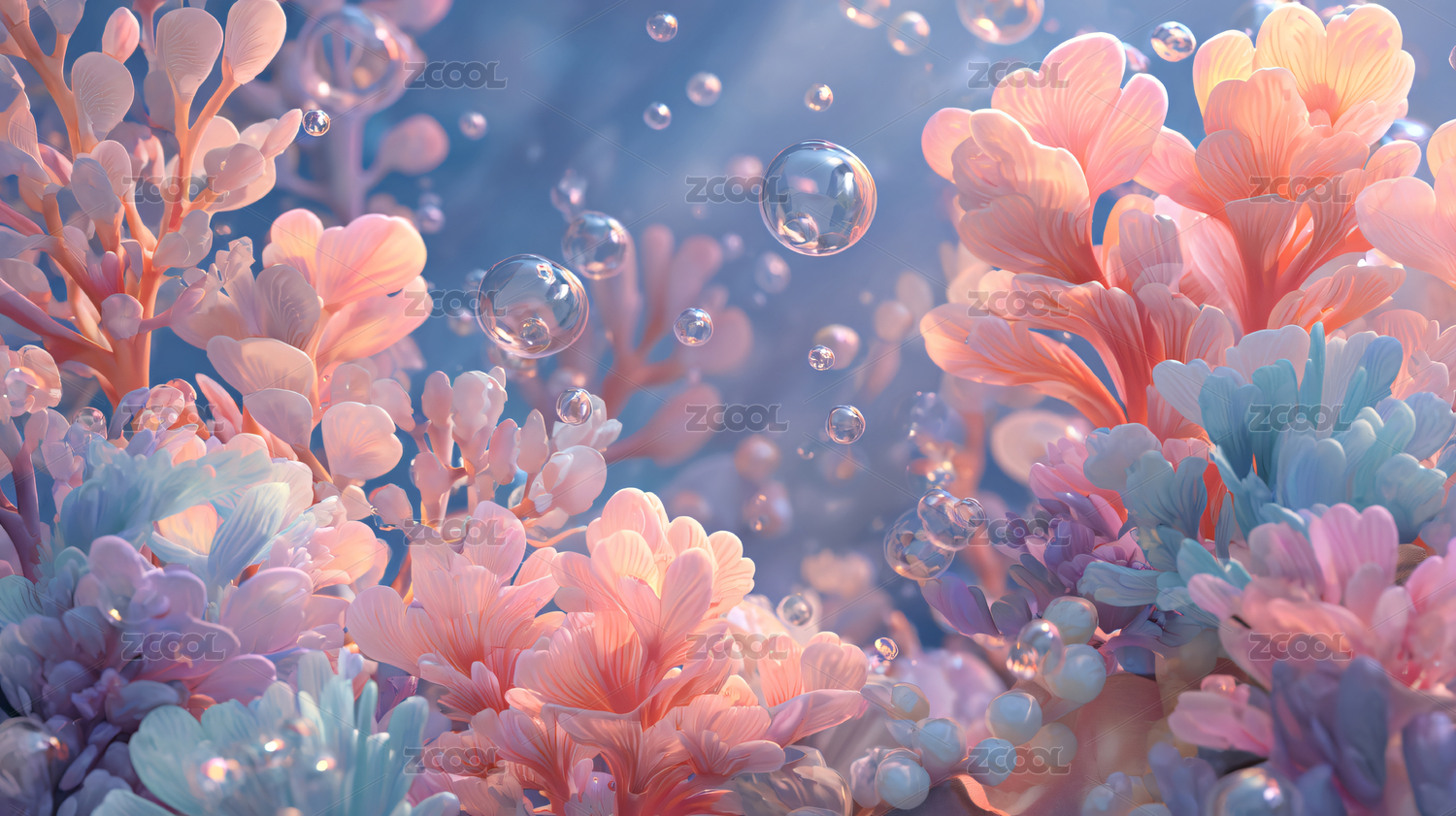 3D卡通彩色植物花朵唯美风景