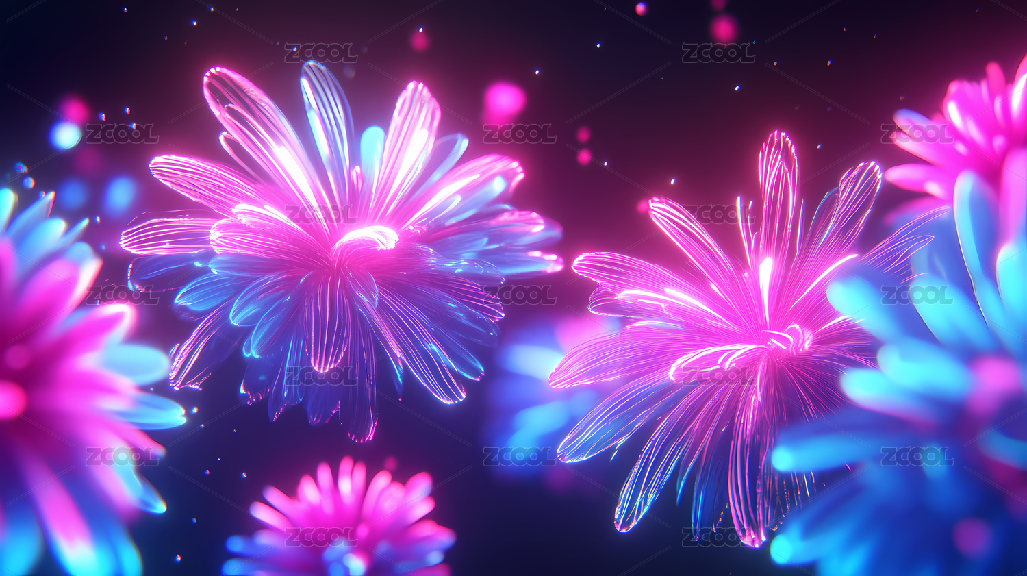 数码科技蓝粉色玻璃菊花海报背景