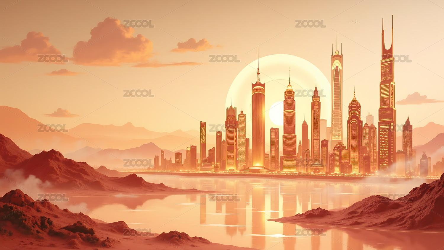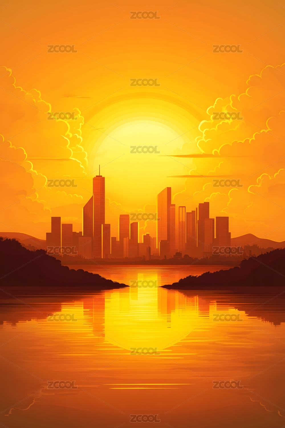 城市,日落,天空,河流,建筑,剪影,太阳,反射,光线
