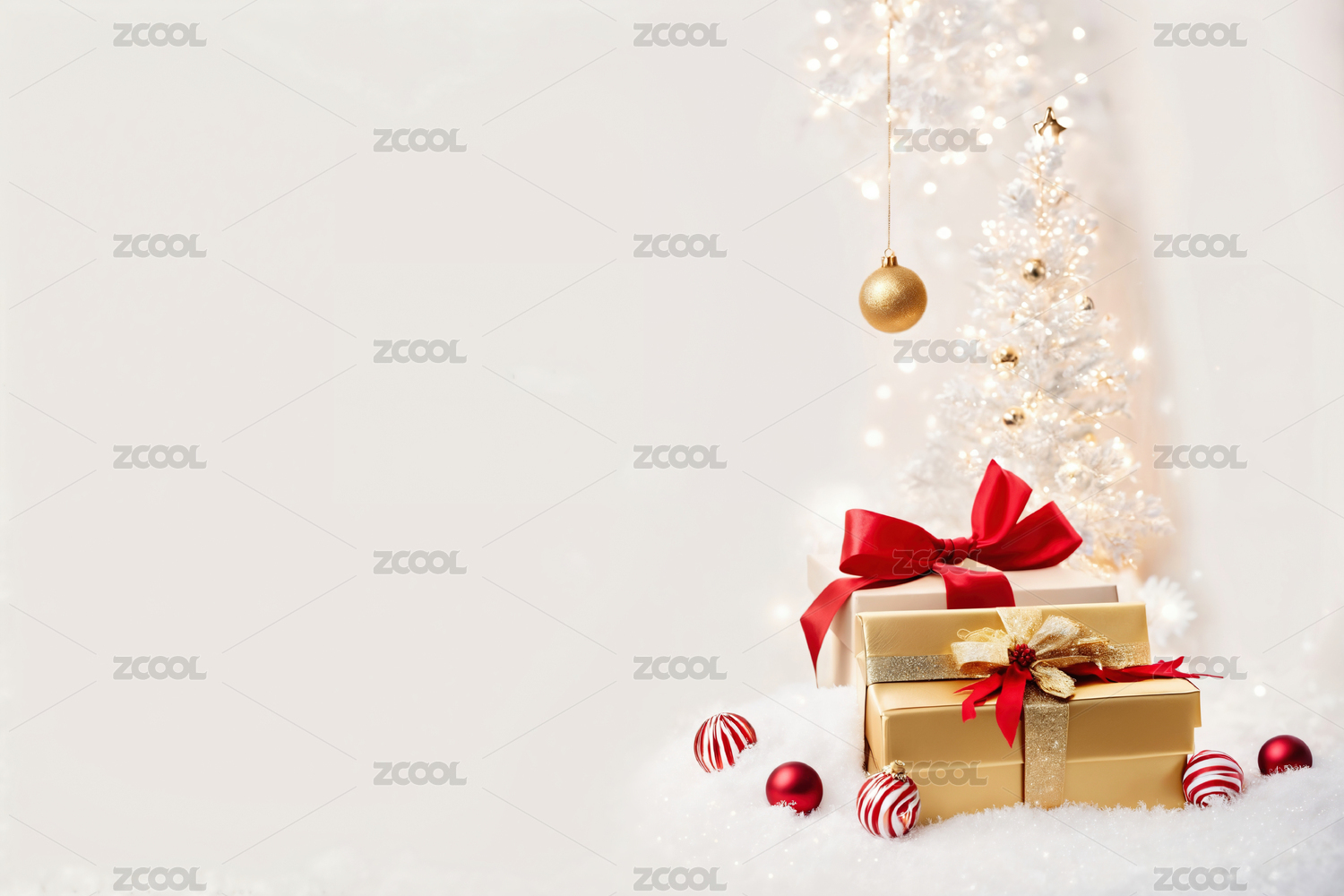 白色礼物盒与节日装饰