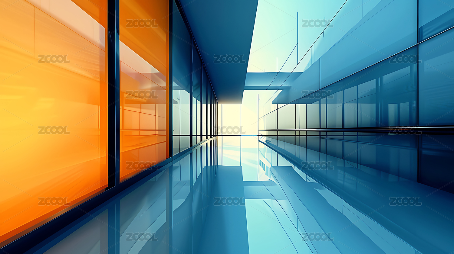 现代橙色办公走廊