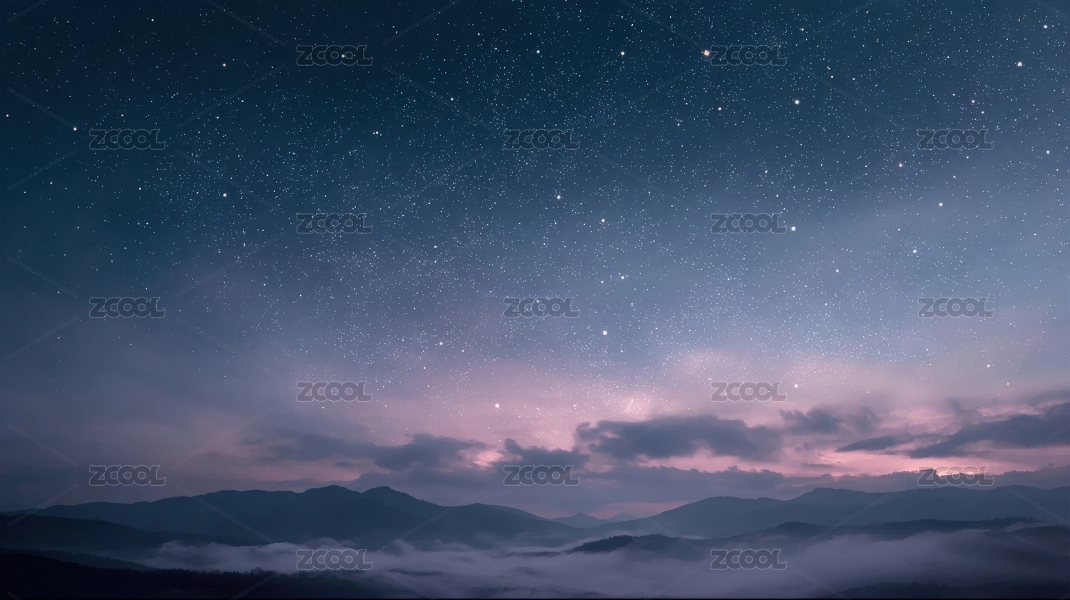 星空,山脉,夜晚,蓝色,天空,星星,山峰,雾气,朦胧,远景
