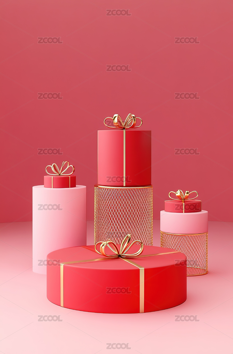 红色礼品盒春节圣诞节电商产品展示台