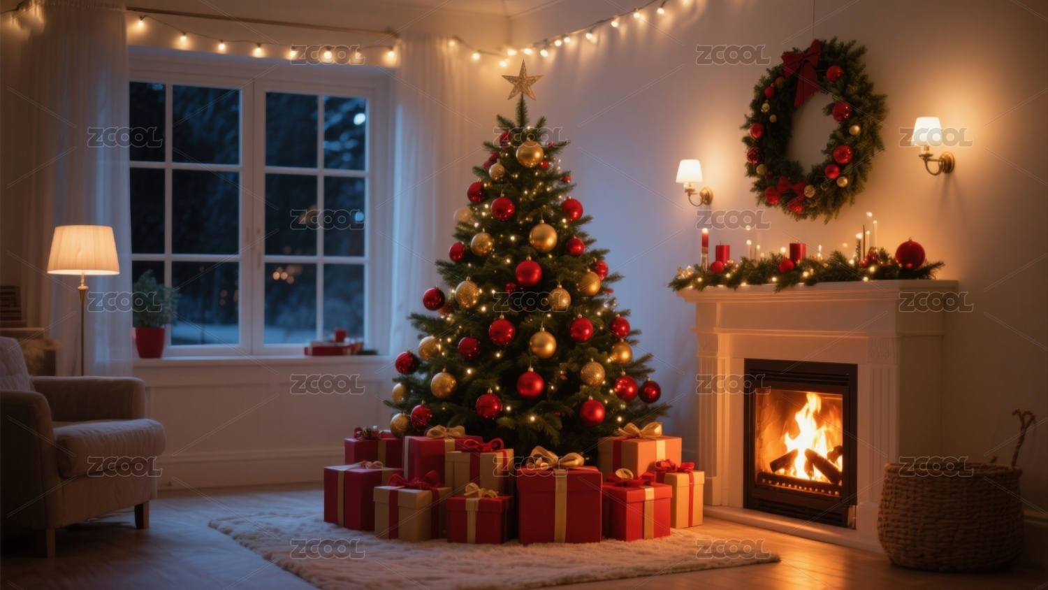 温馨圣诞树与礼物的节日场景