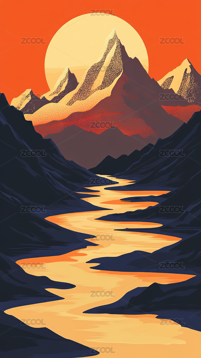 抽象山河与蜿蜒河流