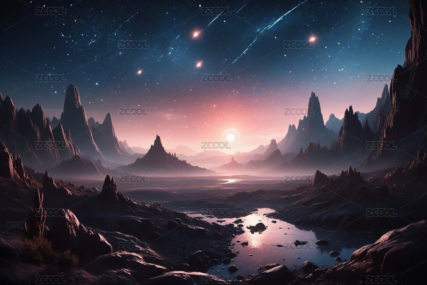 户外,无人,AI数字艺术,建筑,夜晚,天空,日落,剪影,地形,风景