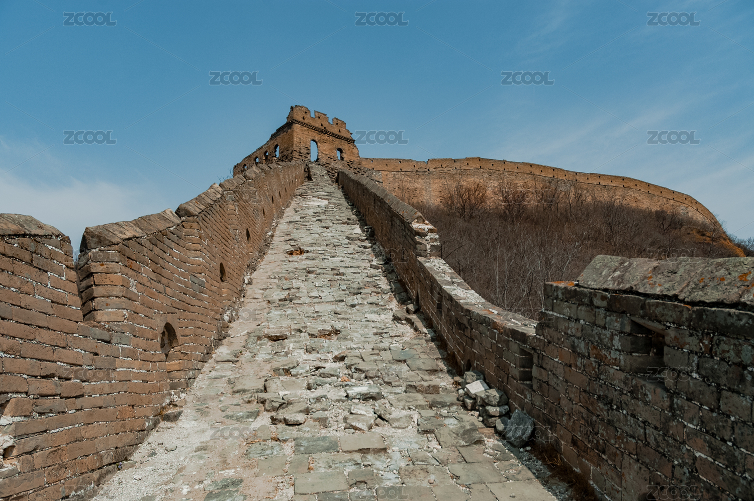 中国金山岭长城破败的城墙及地坪