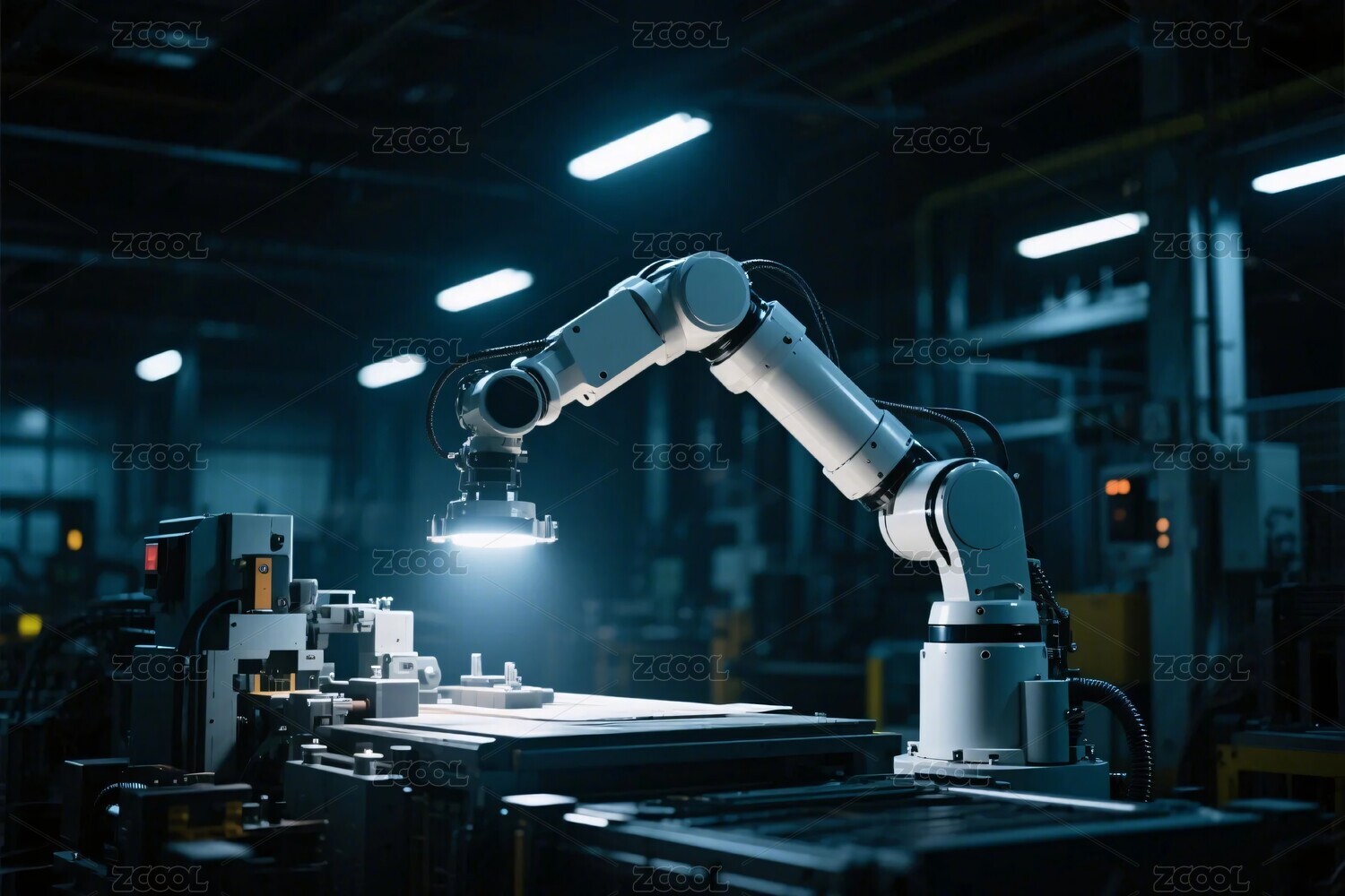 现代化工业机器人手臂工厂内部场景