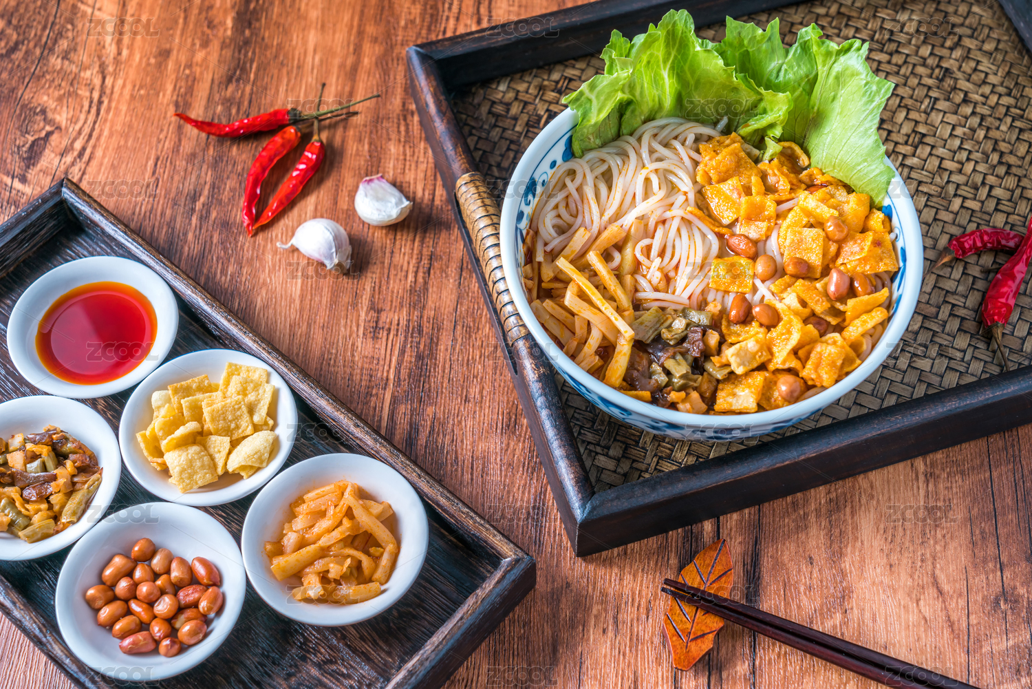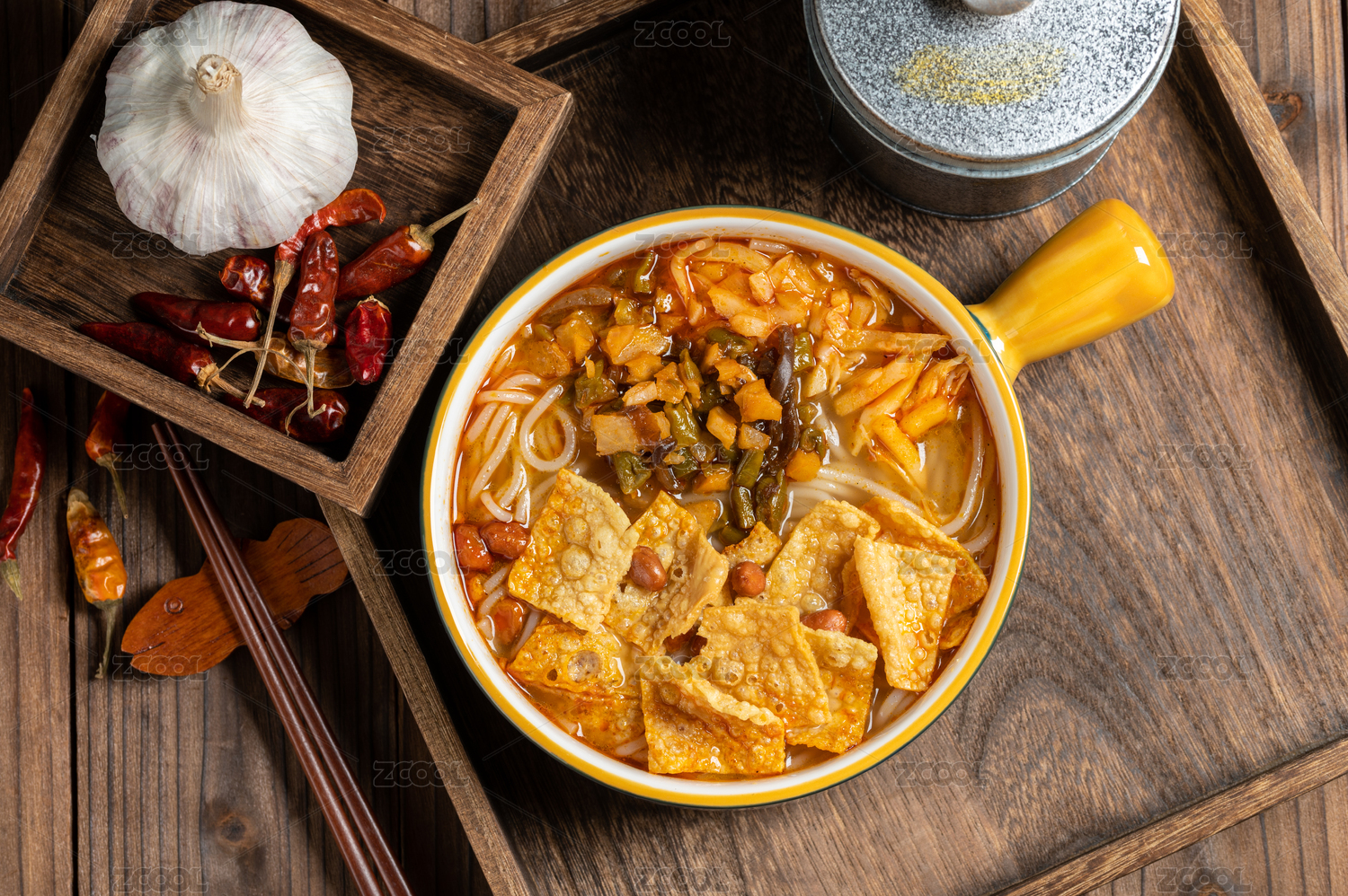 木纹桌上的一碗螺蛳粉