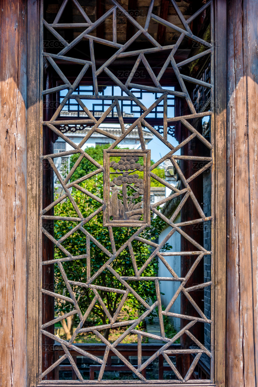 中国江苏泰州溱潼古镇山茶院冰裂纹木雕