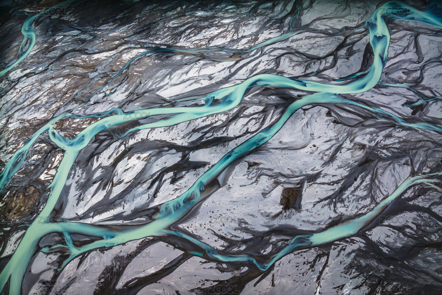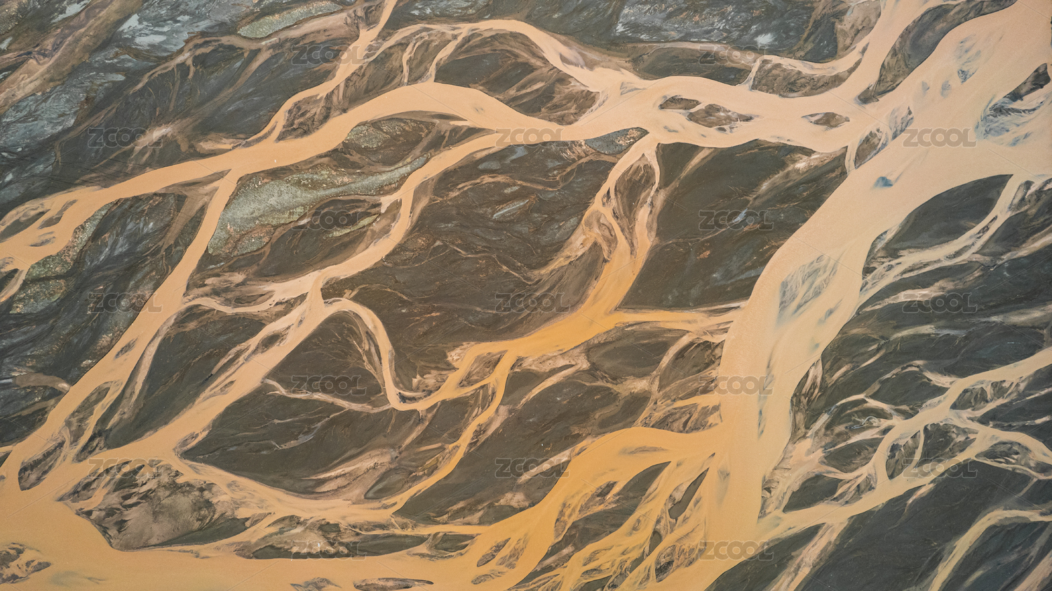冰岛北极圈塞里雅兰河道冰冻纹理航拍