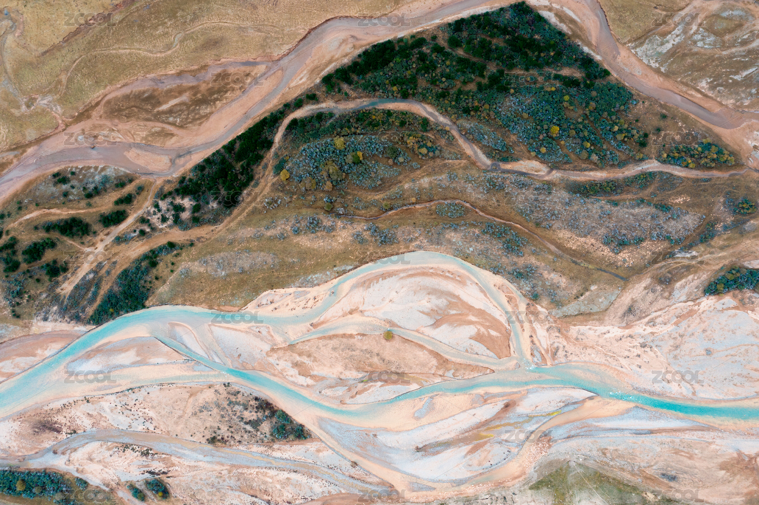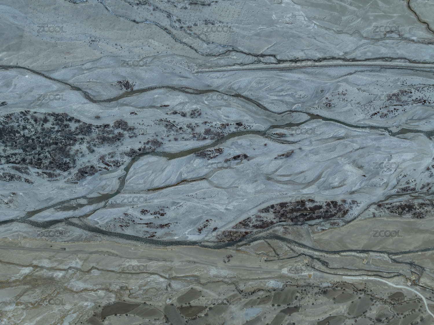 中国西藏定结湿地,雅鲁藏布江切割出的纹理