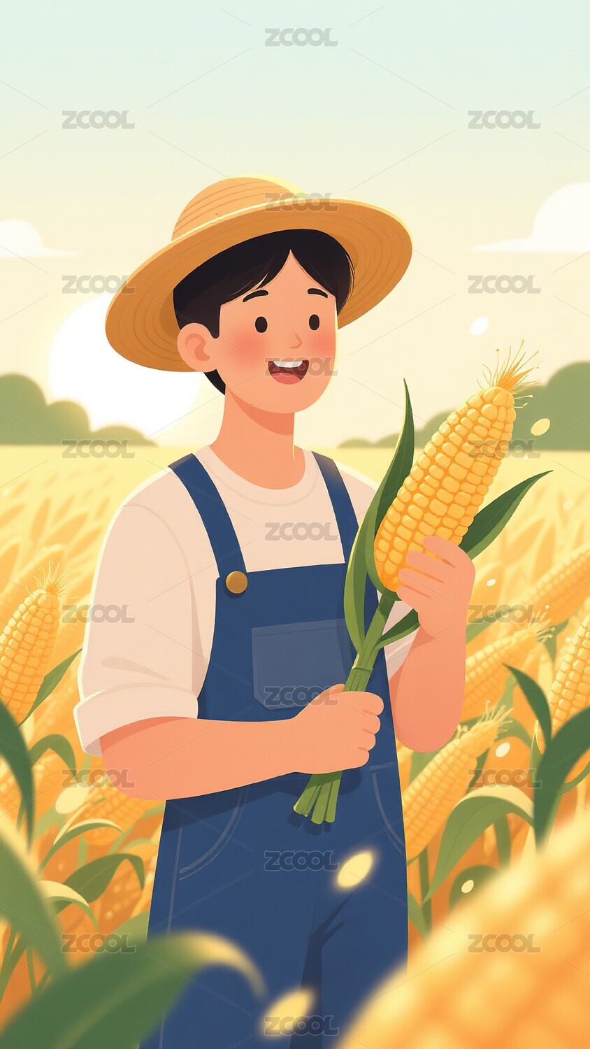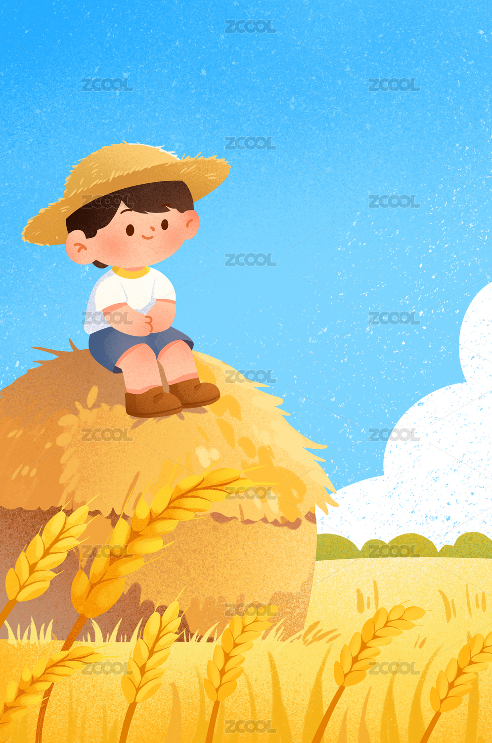 麦穗小女孩插画