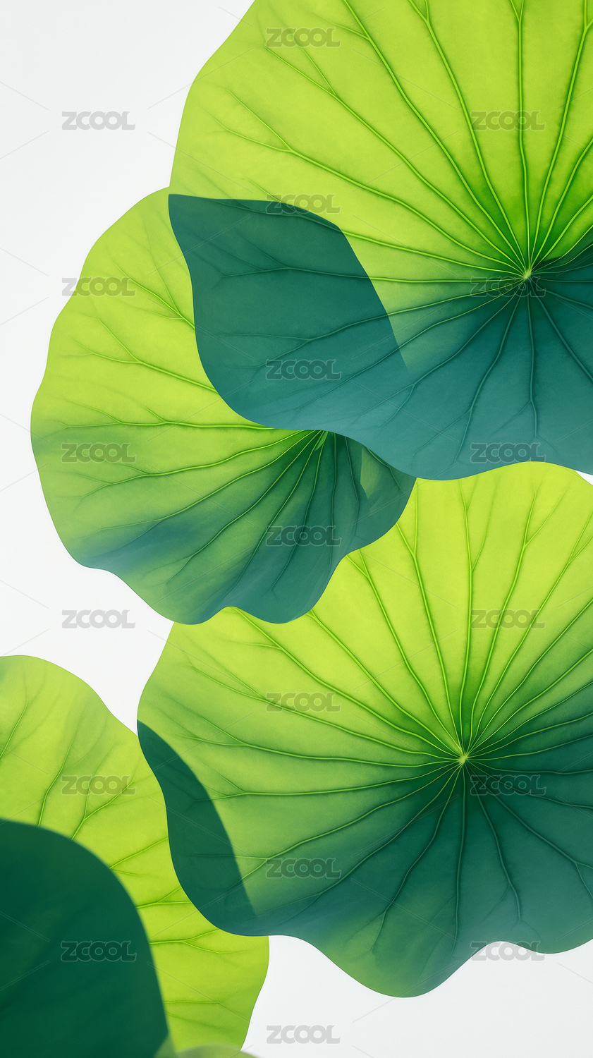 巨大的半透明绿色荷叶特写,中国风创意海报