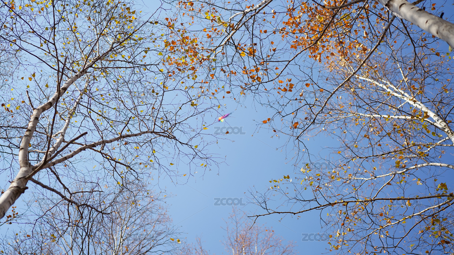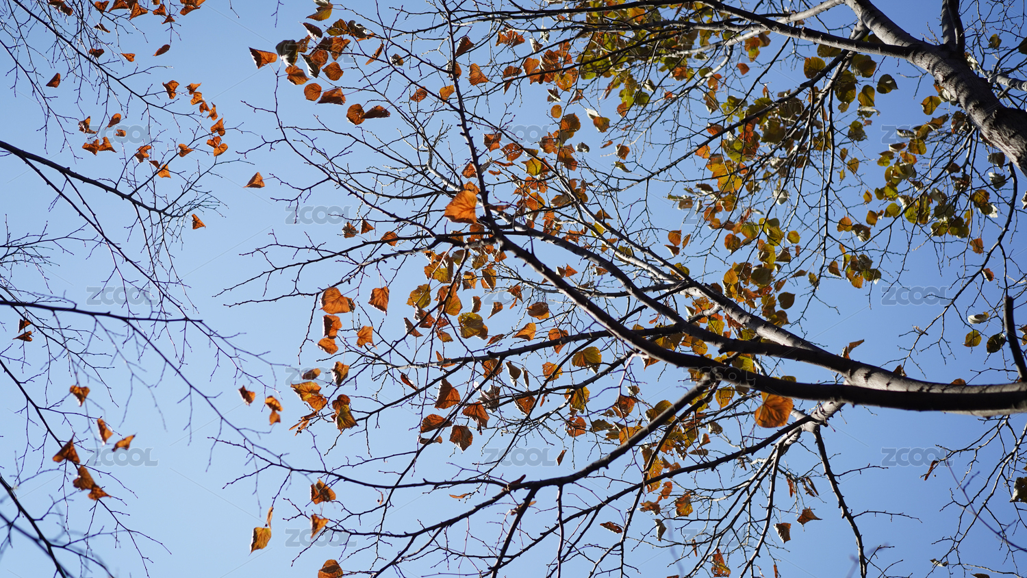 深秋蓝天下的大树