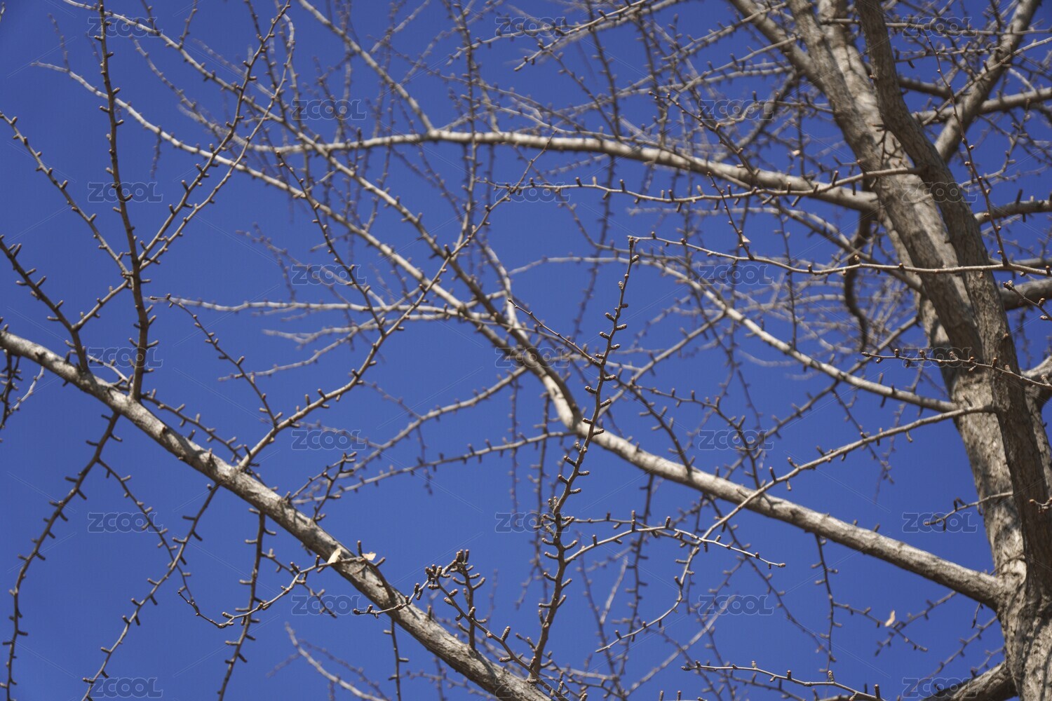 初冬掉光树叶的银杏树树枝