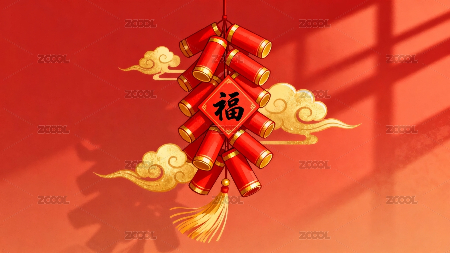 新年福字与爆竹装饰
