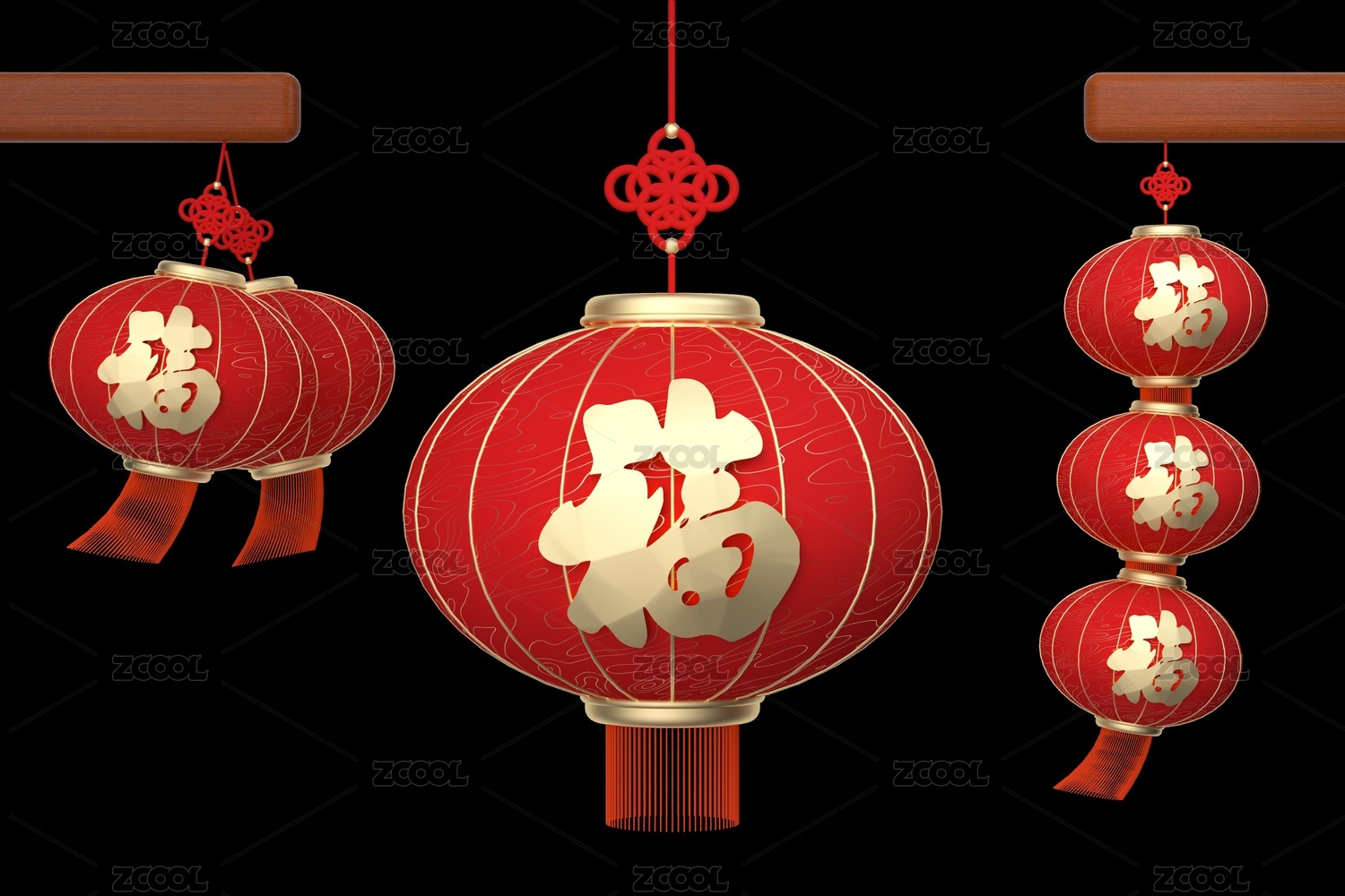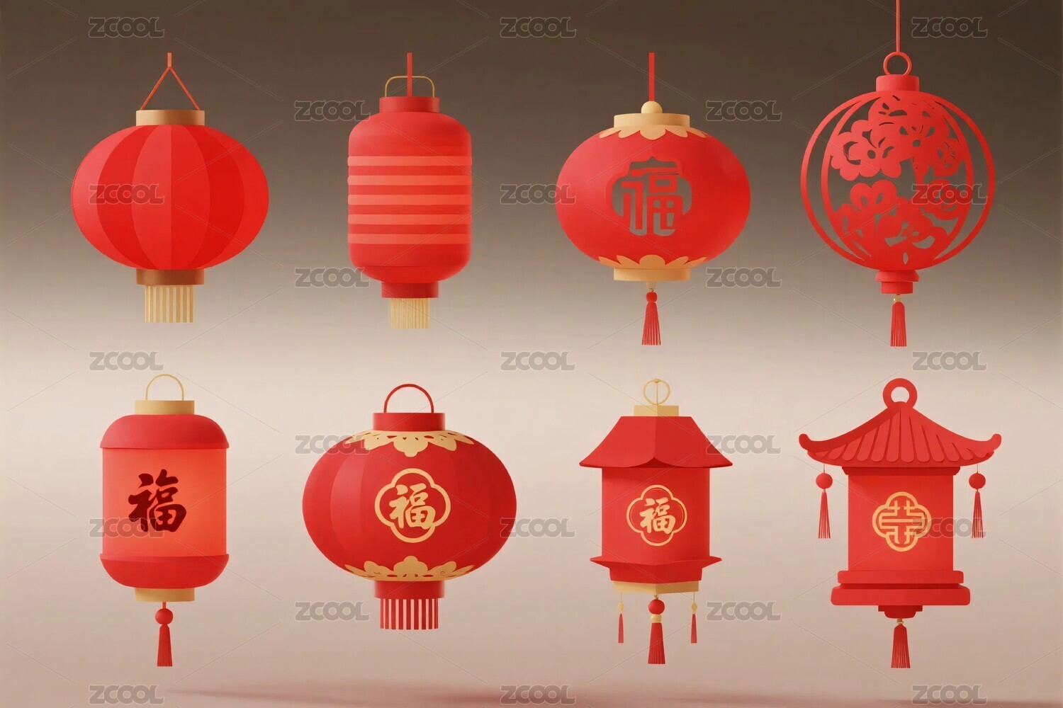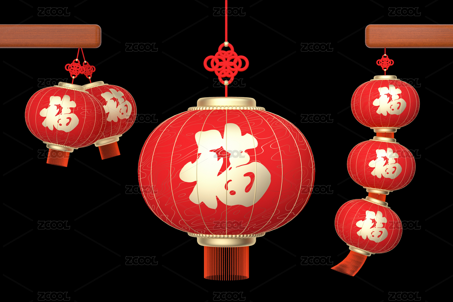 3D建模渲染的中国风红灯笼